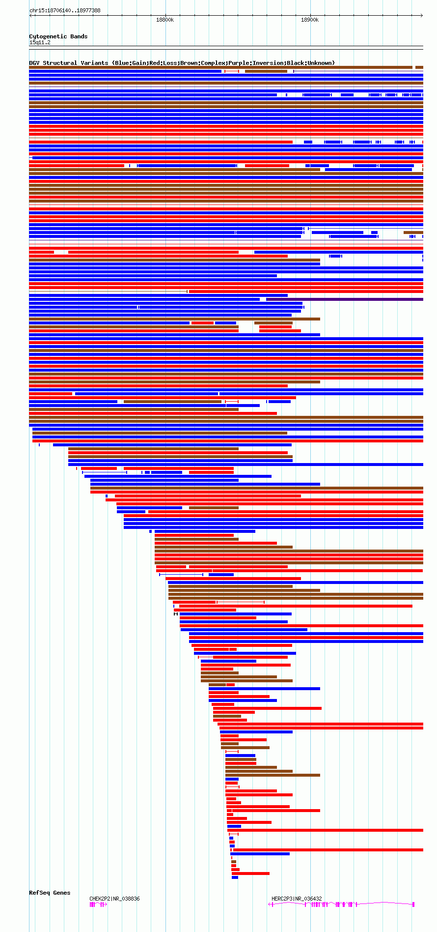 Variant DetailsVariant: nsv1049726| Internal ID | 19138945 | | Landmark | | | Location Information | | | Cytoband | 15q11.1 | | Allele length | | Assembly | Allele length | | hg38 | 271259 | | hg19 | 271249 | | hg18 | 271249 |