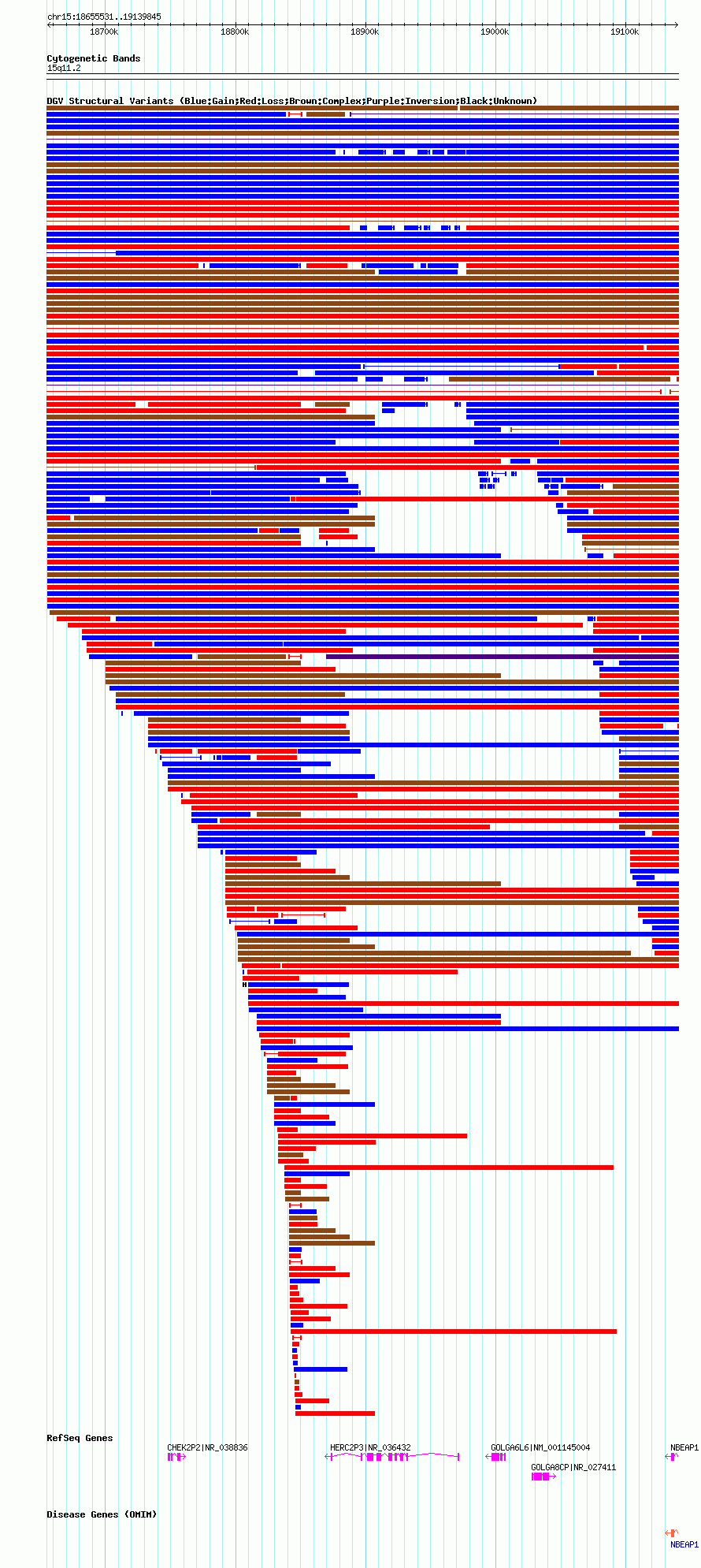 Variant DetailsVariant: nsv1049879| Internal ID | 19139098 | | Landmark | | | Location Information | | | Cytoband | 15q11.1 | | Allele length | | Assembly | Allele length | | hg38 | 484239 | | hg19 | 484315 | | hg18 | 484315 |