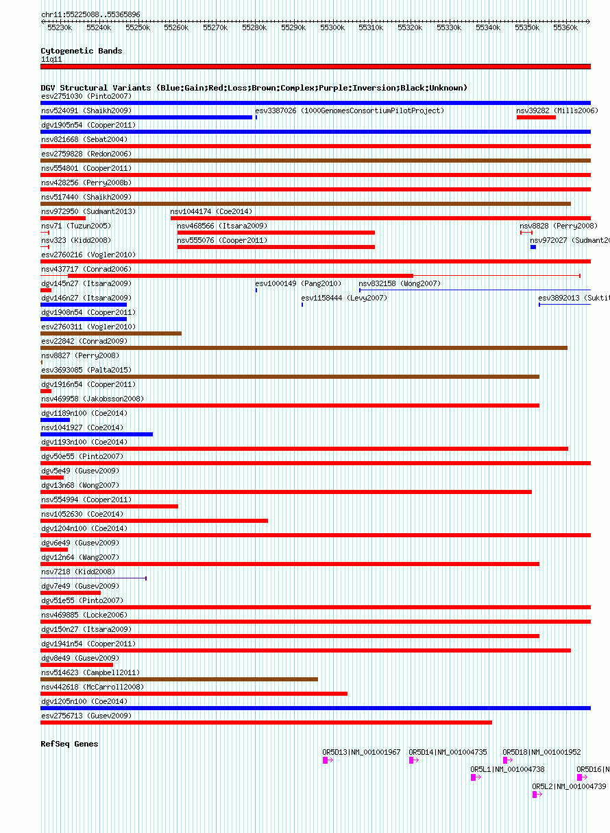 Variant DetailsVariant: nsv1049992| Internal ID | 19139211 | | Landmark | | | Location Information | | | Cytoband | 11q11 | | Allele length | | Assembly | Allele length | | hg38 | 140809 | | hg19 | 140809 | | hg18 | 140809 |