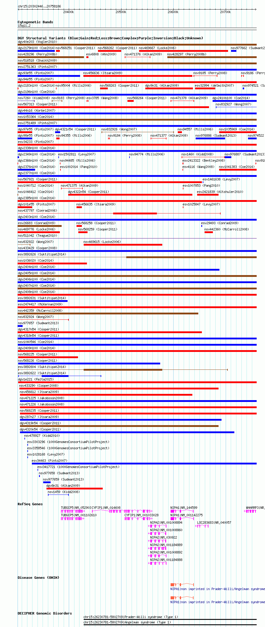 Variant DetailsVariant: nsv1050103| Internal ID | 19139322 | | Landmark | | | Location Information | | | Cytoband | 15q11.2 | | Allele length | | Assembly | Allele length | | hg38 | 455636 | | hg19 | 455664 | | hg18 | 455741 |