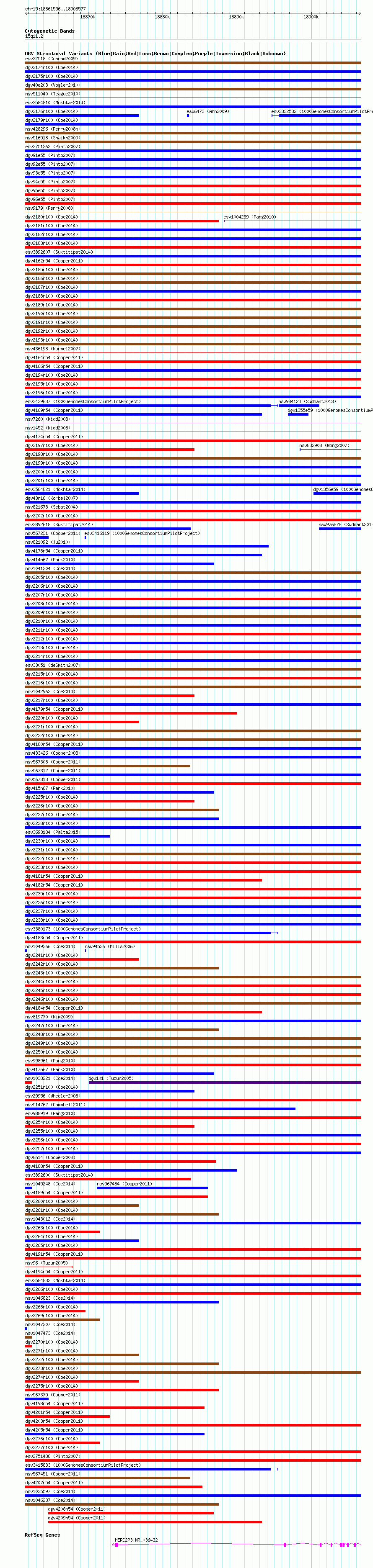 Variant DetailsVariant: nsv1050148| Internal ID | 19139367 | | Landmark | | | Location Information | | | Cytoband | 15q11.1 | | Allele length | | Assembly | Allele length | | hg38 | 45022 | | hg19 | 45022 | | hg18 | 45022 |