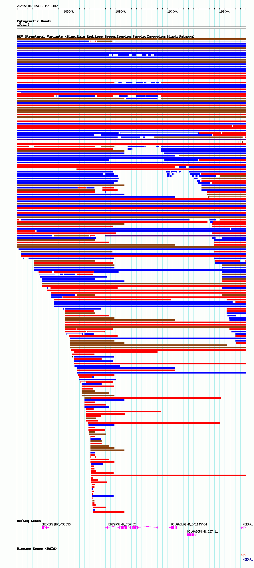 Variant DetailsVariant: nsv1050554| Internal ID | 19139773 | | Landmark | | | Location Information | | | Cytoband | 15q11.1 | | Allele length | | Assembly | Allele length | | hg38 | 439230 | | hg19 | 439306 | | hg18 | 439306 |