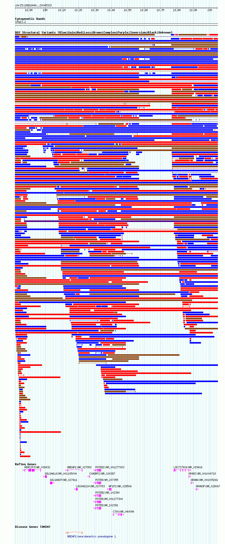 Variant DetailsVariant: nsv1050631| Internal ID | 19139850 | | Landmark | | | Location Information | | | Cytoband | 15q11.1 | | Allele length | | Assembly | Allele length | | hg38 | 1904842 | | hg19 | 1987540 | | hg18 | 1228890 |