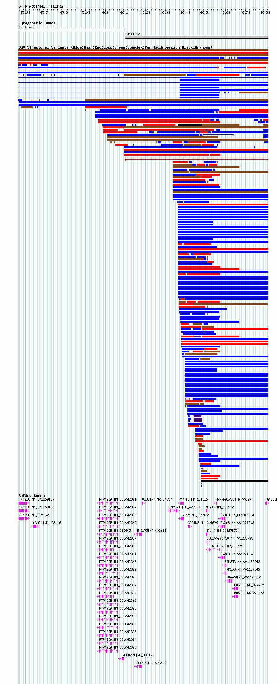 Variant DetailsVariant: nsv1050672| Internal ID | 19139891 | | Landmark | | | Location Information | | | Cytoband | 10q11.21 | | Allele length | | Assembly | Allele length | | hg19 | 1144966 | | hg18 | 1244966 |