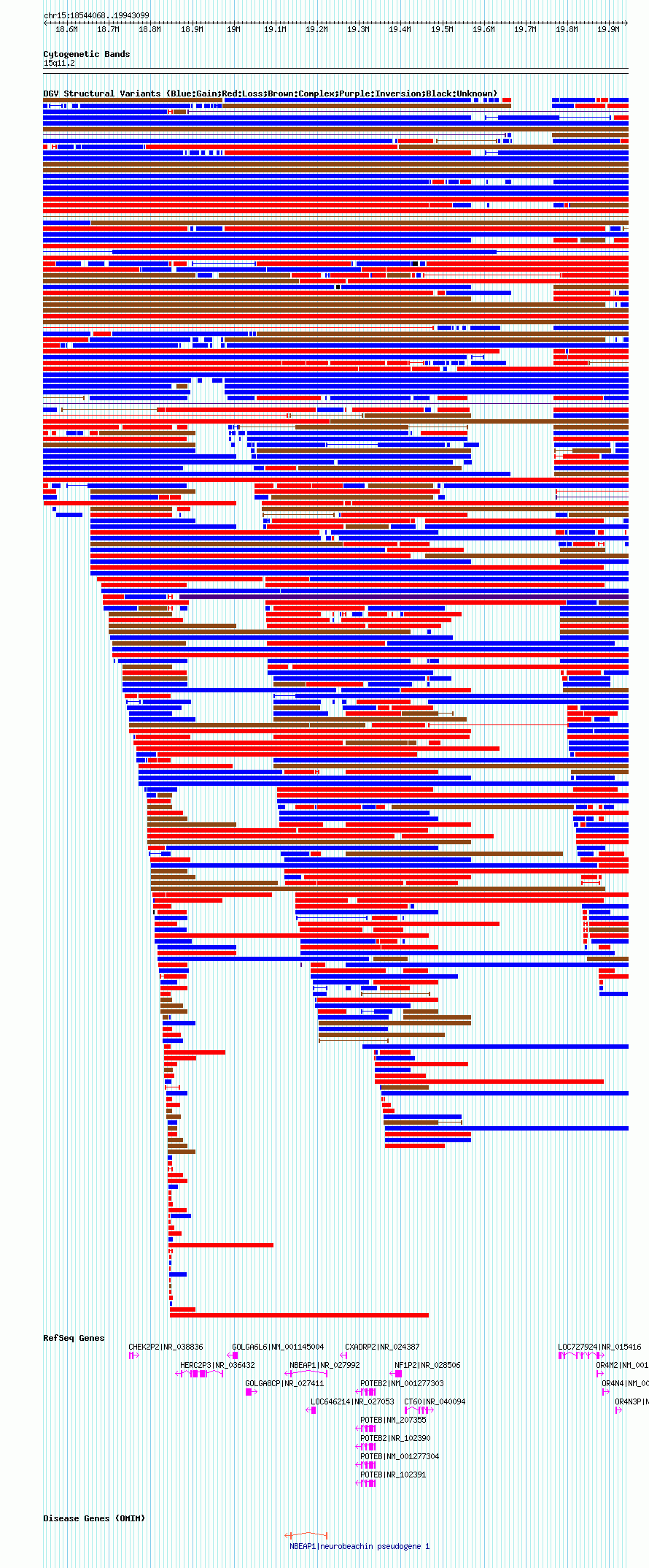Variant DetailsVariant: nsv1051089| Internal ID | 19140308 | | Landmark | | | Location Information | | | Cytoband | 15q11.1 | | Allele length | | Assembly | Allele length | | hg38 | 2074984 | | hg19 | 2157682 | | hg18 | 1399032 |