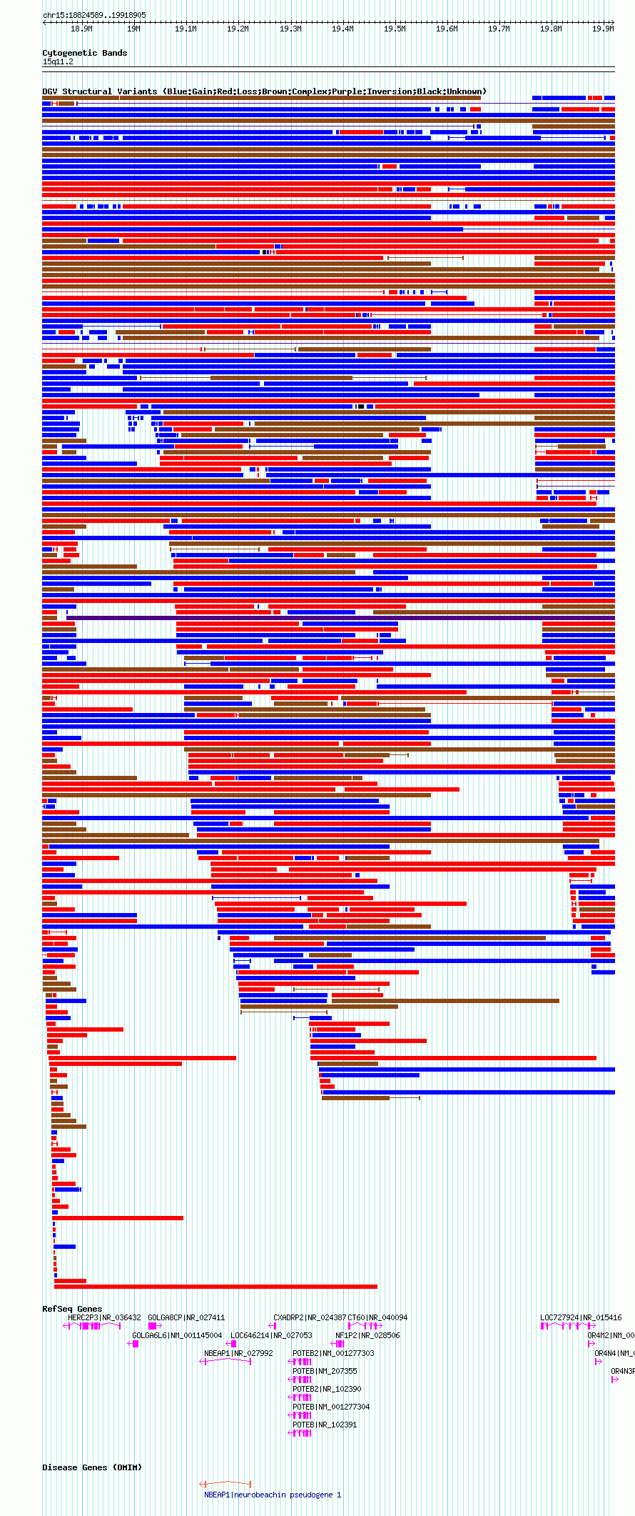 Variant DetailsVariant: nsv1051146| Internal ID | 19140365 | | Landmark | | | Location Information | | | Cytoband | 15q11.1 | | Allele length | | Assembly | Allele length | | hg38 | 1770269 | | hg19 | 1852967 | | hg18 | 1094317 |