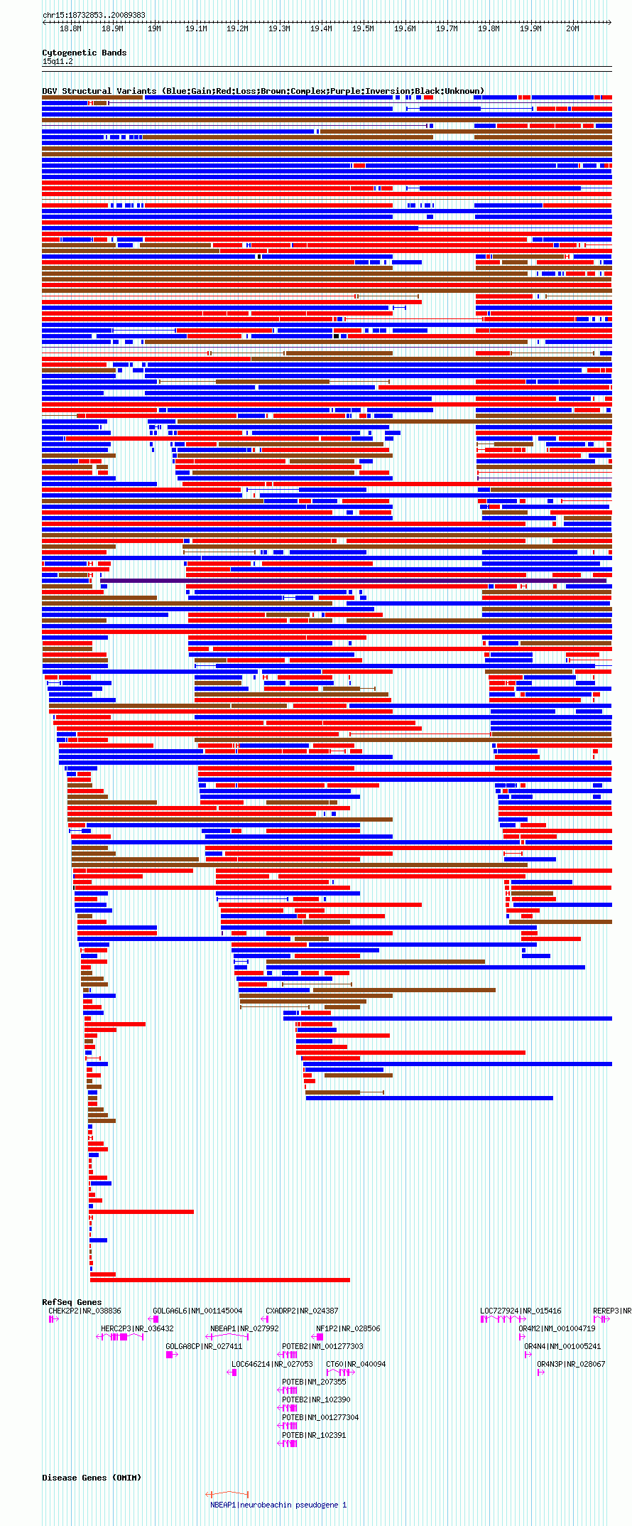 Variant DetailsVariant: nsv1051154| Internal ID | 19140373 | | Landmark | | | Location Information | | | Cytoband | 15q11.1 | | Allele length | | Assembly | Allele length | | hg38 | 2032483 | | hg19 | 2115181 | | hg18 | 1356531 |