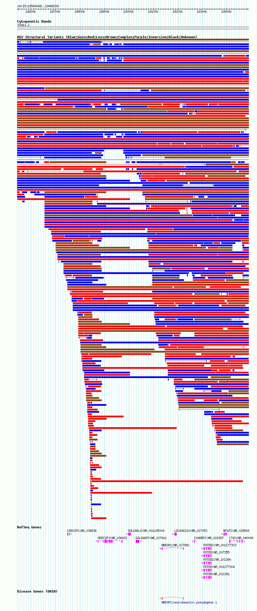 Variant DetailsVariant: nsv1051434| Internal ID | 19140653 | | Landmark | | | Location Information | | | Cytoband | 15q11.1 | | Allele length | | Assembly | Allele length | | hg38 | 939542 | | hg19 | 939618 | | hg18 | 944263 |
