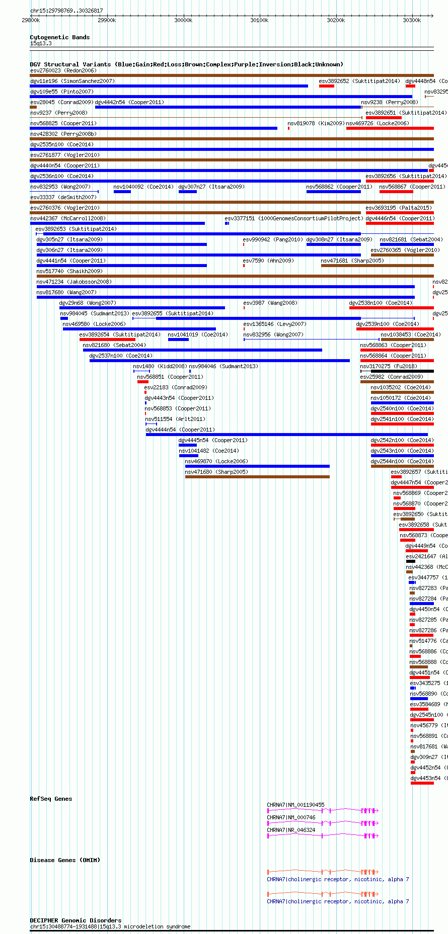 Variant DetailsVariant: nsv1051577| Internal ID | 19140796 | | Landmark | | | Location Information | | | Cytoband | 15q13.3 | | Allele length | | Assembly | Allele length | | hg38 | 528051 | | hg19 | 528049 | | hg18 | 528049 |