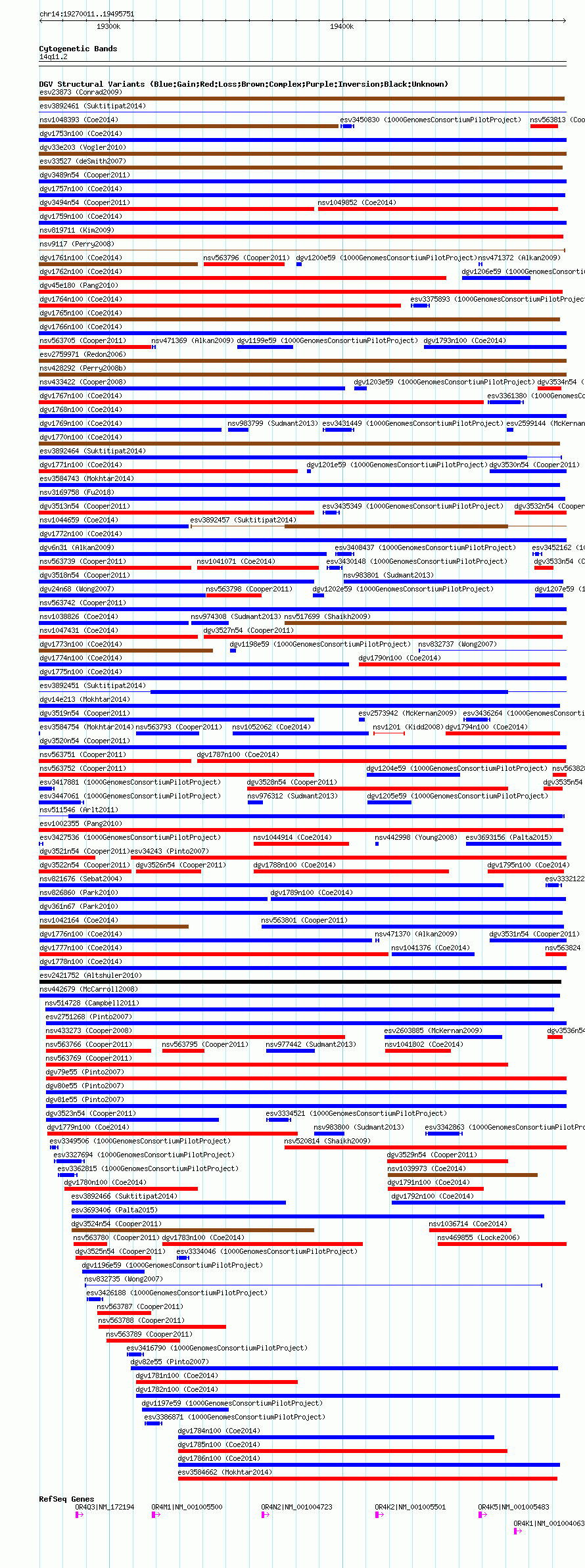 Variant DetailsVariant: nsv1051690| Internal ID | 19140909 | | Landmark | | | Location Information | | | Cytoband | 14q11.2 | | Allele length | | Assembly | Allele length | | hg38 | 225741 | | hg19 | 225741 | | hg18 | 225741 |