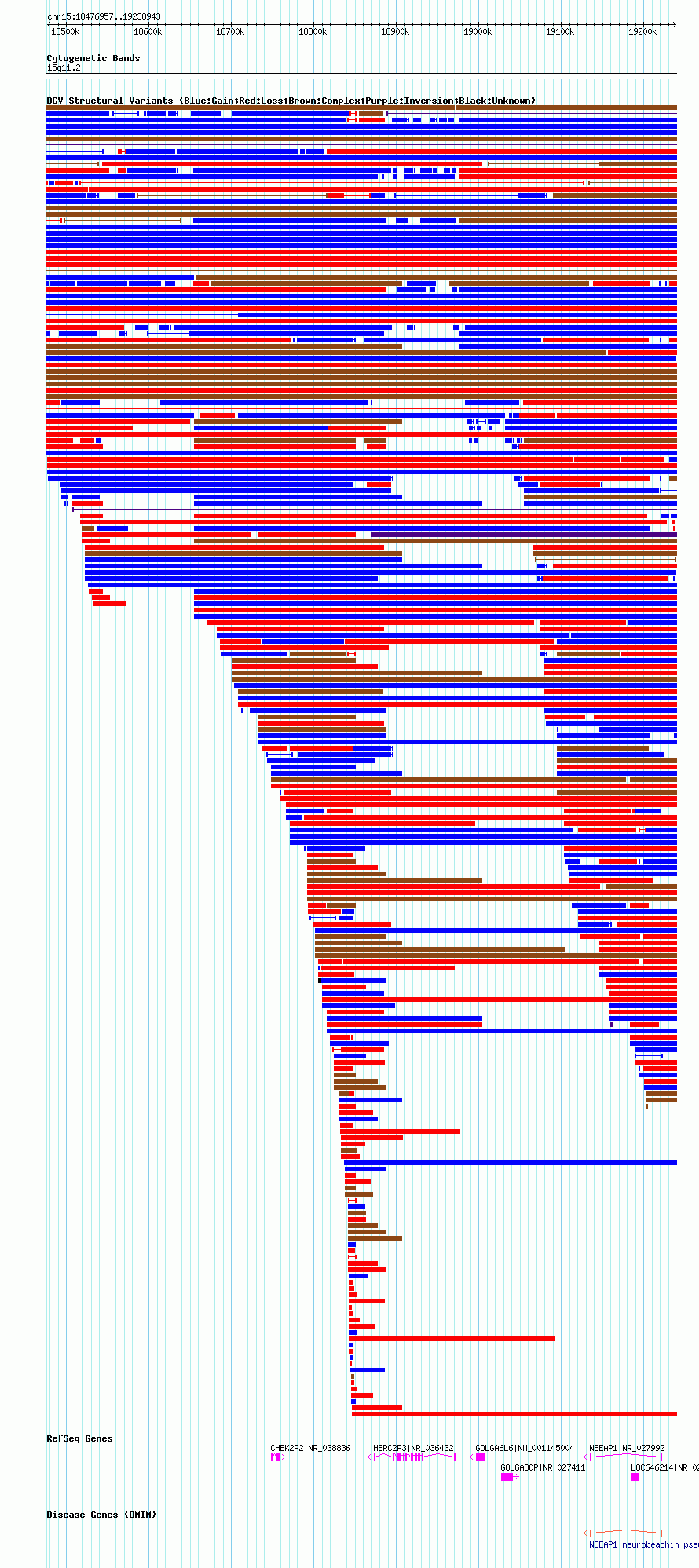 Variant DetailsVariant: nsv1051833| Internal ID | 19141052 | | Landmark | | | Location Information | | | Cytoband | 15q11.1 | | Allele length | | Assembly | Allele length | | hg38 | 761880 | | hg19 | 761956 | | hg18 | 761987 |