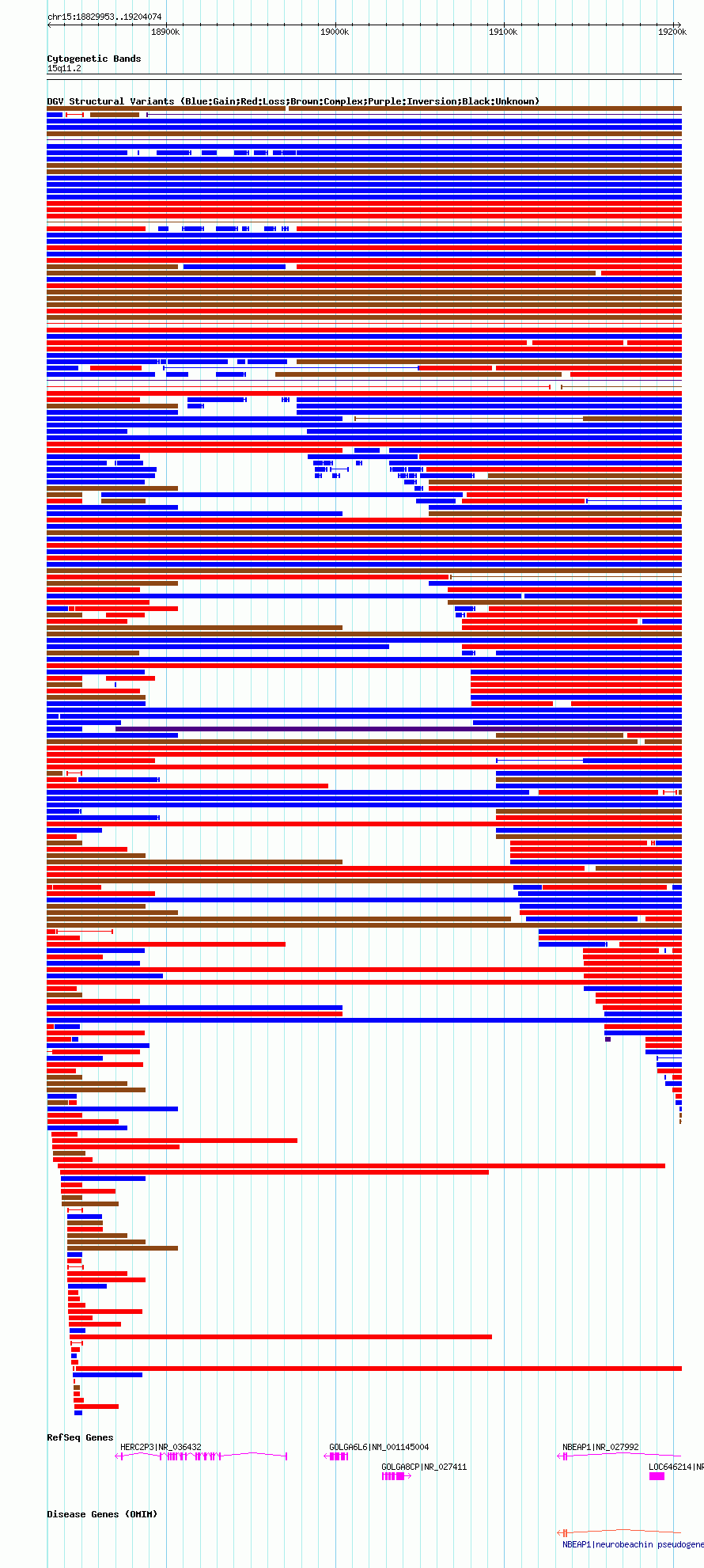 Variant DetailsVariant: nsv1051872| Internal ID | 19141091 | | Landmark | | | Location Information | | | Cytoband | 15q11.1 | | Allele length | | Assembly | Allele length | | hg38 | 374032 | | hg19 | 374108 | | hg18 | 374122 |