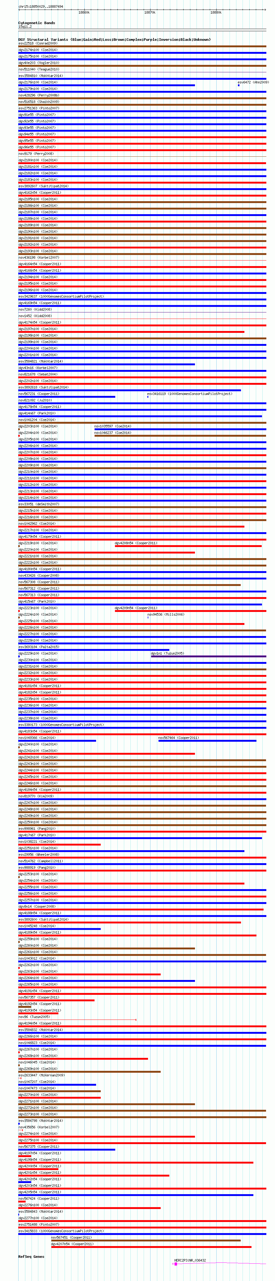 Variant DetailsVariant: nsv1051951| Internal ID | 19141170 | | Landmark | | | Location Information | | | Cytoband | 15q11.1 | | Allele length | | Assembly | Allele length | | hg38 | 37466 | | hg19 | 37466 | | hg18 | 37466 |
