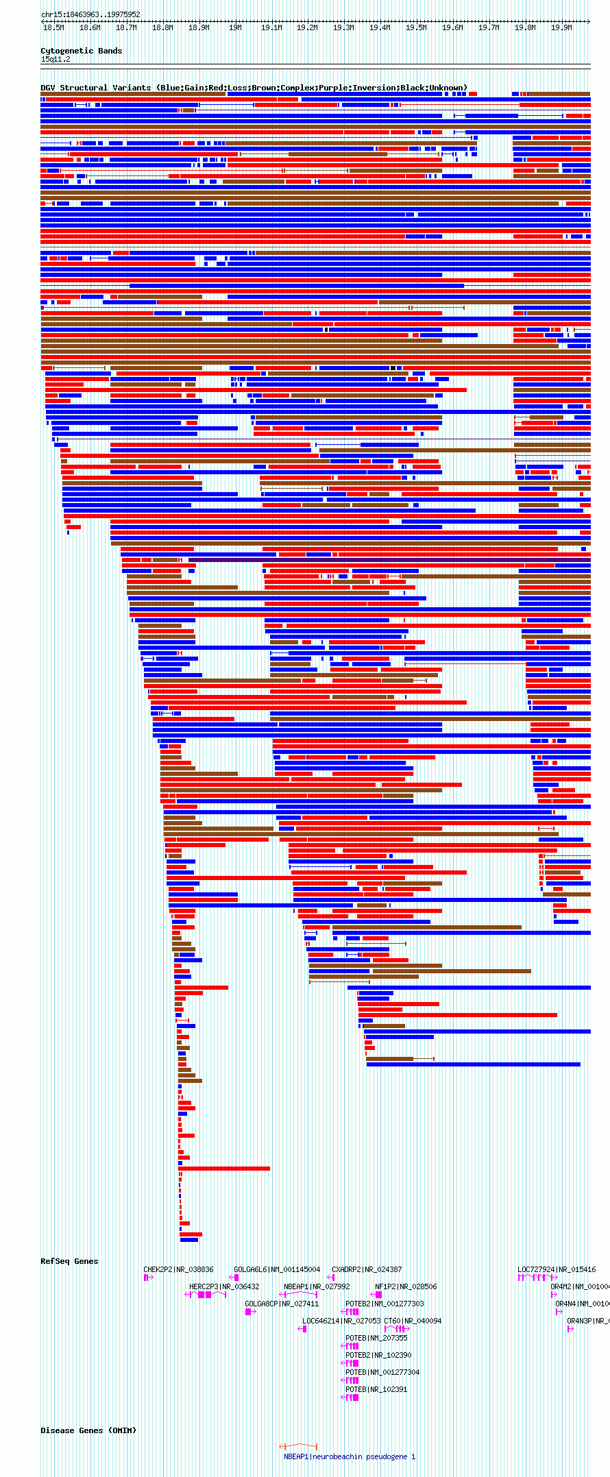 Variant DetailsVariant: nsv1052023| Internal ID | 19141242 | | Landmark | | | Location Information | | | Cytoband | 15q11.1 | | Allele length | | Assembly | Allele length | | hg38 | 2187942 | | hg19 | 2270640 | | hg18 | 1511990 |