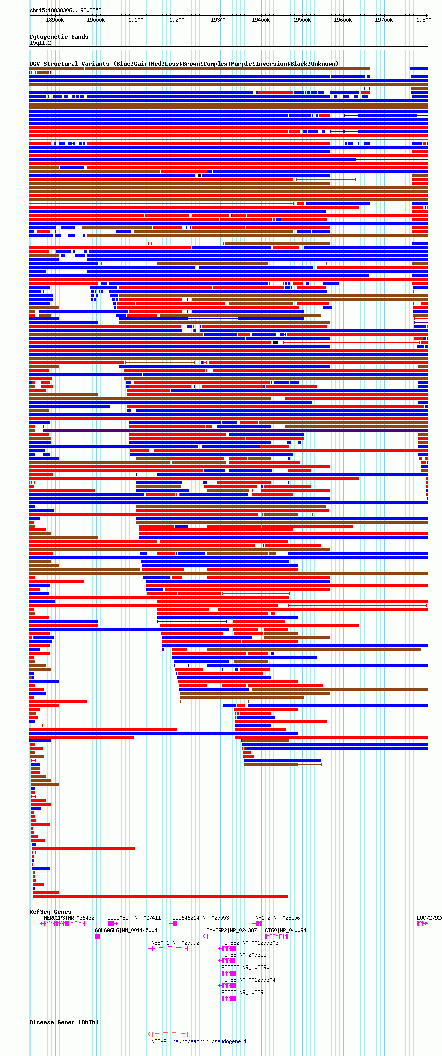 Variant DetailsVariant: nsv1052077| Internal ID | 19141296 | | Landmark | | | Location Information | | | Cytoband | 15q11.1 | | Allele length | | Assembly | Allele length | | hg38 | 1641005 | | hg19 | 1723703 | | hg18 | 965053 |