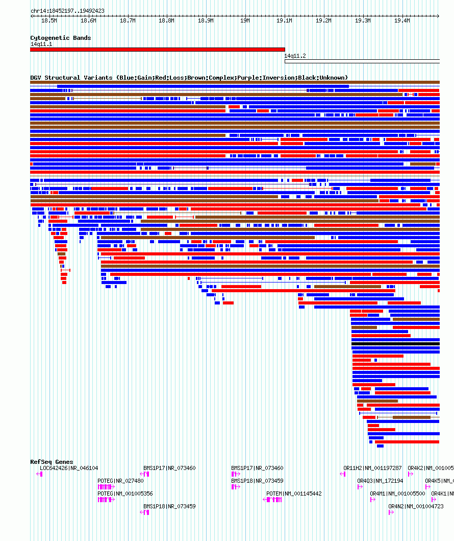 Variant DetailsVariant: nsv1052342| Internal ID | 19141561 | | Landmark | | | Location Information | | | Cytoband | 14q11.1 | | Allele length | | Assembly | Allele length | | hg38 | 1348705 | | hg19 | 1040387 | | hg18 | 1040227 |