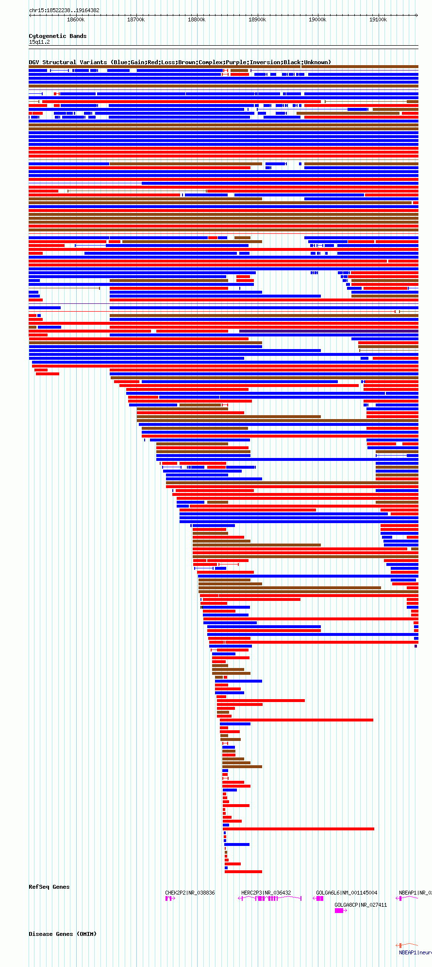 Variant DetailsVariant: nsv1052358| Internal ID | 19141577 | | Landmark | | | Location Information | | | Cytoband | 15q11.1 | | Allele length | | Assembly | Allele length | | hg38 | 632328 | | hg19 | 632404 | | hg18 | 642145 |