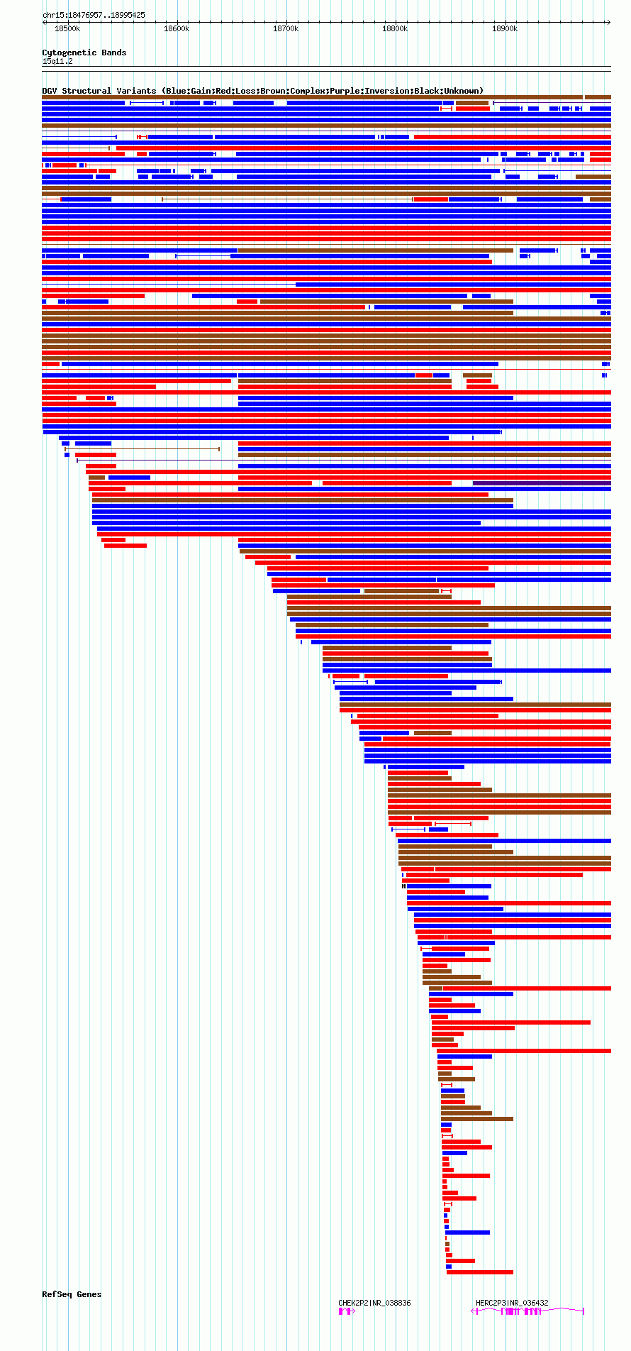 Variant DetailsVariant: nsv1052413| Internal ID | 19141632 | | Landmark | | | Location Information | | | Cytoband | 15q11.1 | | Allele length | | Assembly | Allele length | | hg38 | 518484 | | hg19 | 518469 | | hg18 | 518469 |
