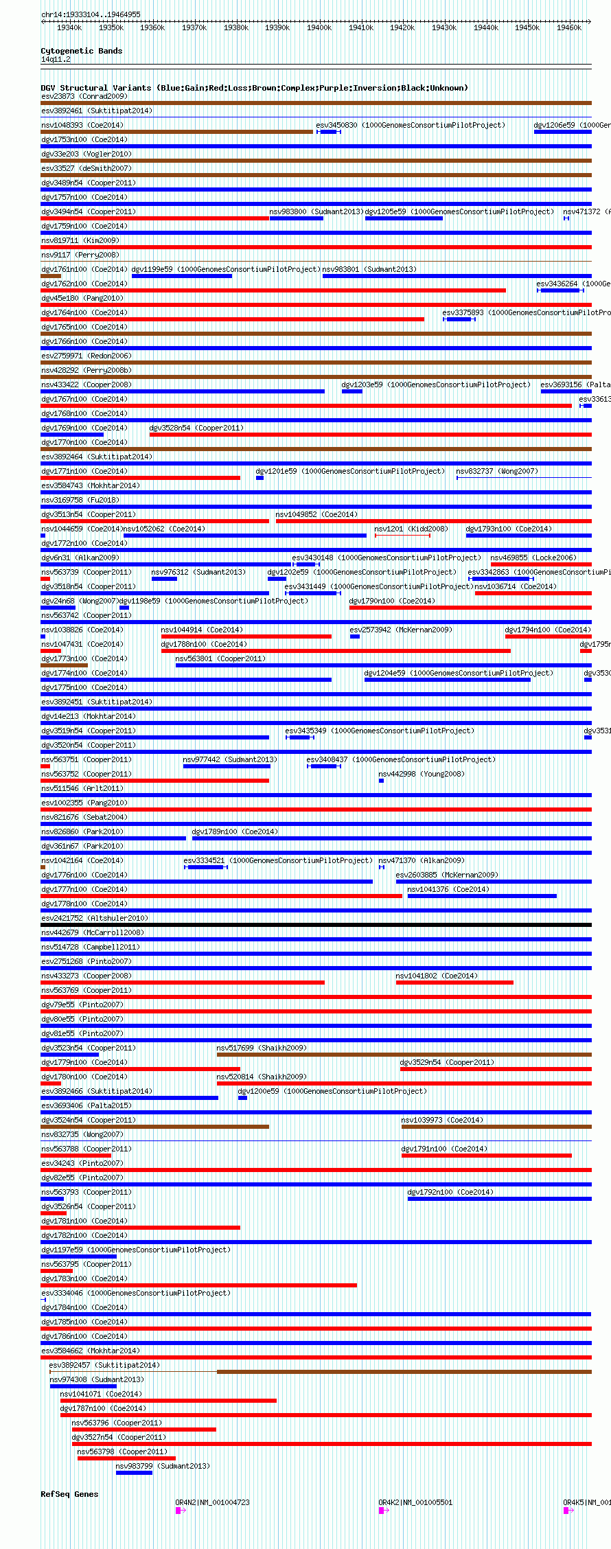 Variant DetailsVariant: nsv1052644| Internal ID | 19141863 | | Landmark | | | Location Information | | | Cytoband | 14q11.2 | | Allele length | | Assembly | Allele length | | hg38 | 131852 | | hg19 | 131852 | | hg18 | 131852 |