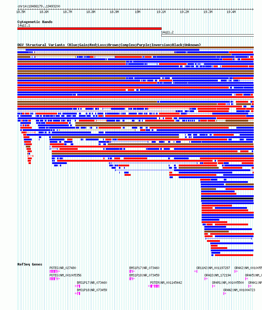 Variant DetailsVariant: nsv1052972 | Internal ID | 19142191 | | Landmark | | | Location Information | | | Cytoband | 14q11.1 | | Allele length | | Assembly | Allele length | | hg38 | 1315500 | | hg19 | 1007182 | | hg18 | 1007022 |