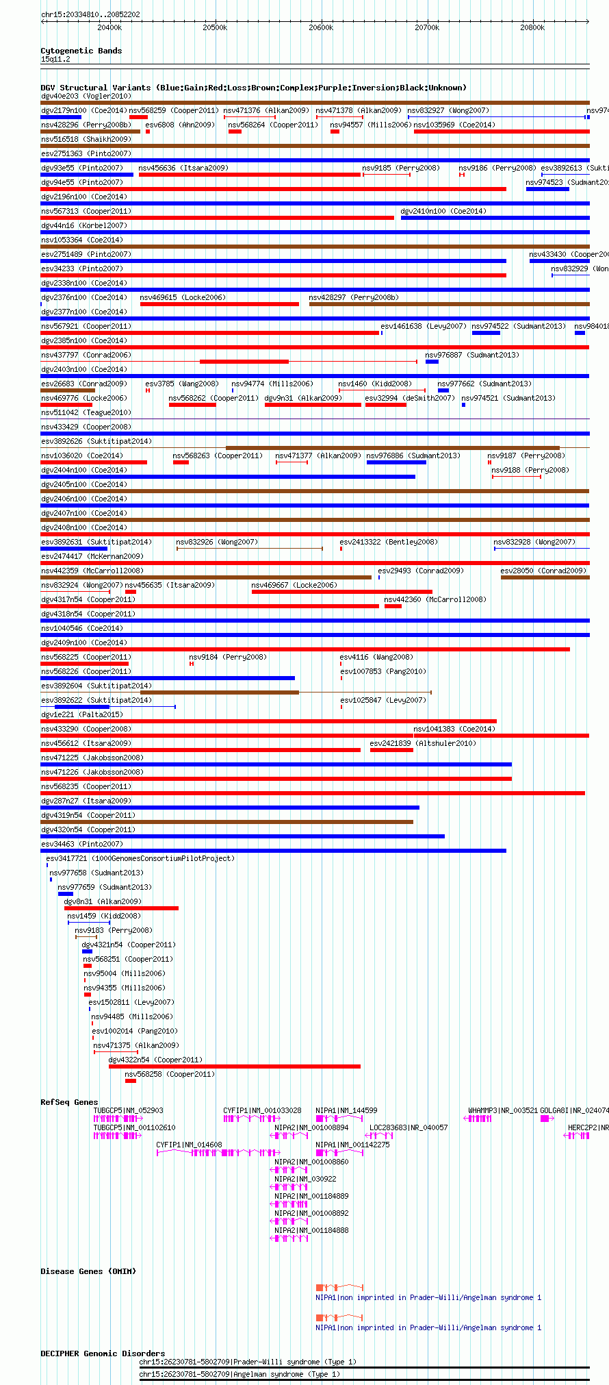 Variant DetailsVariant: nsv1053376| Internal ID | 19142595 | | Landmark | | | Location Information | | | Cytoband | 15q11.2 | | Allele length | | Assembly | Allele length | | hg38 | 517288 | | hg19 | 517316 | | hg18 | 517393 |