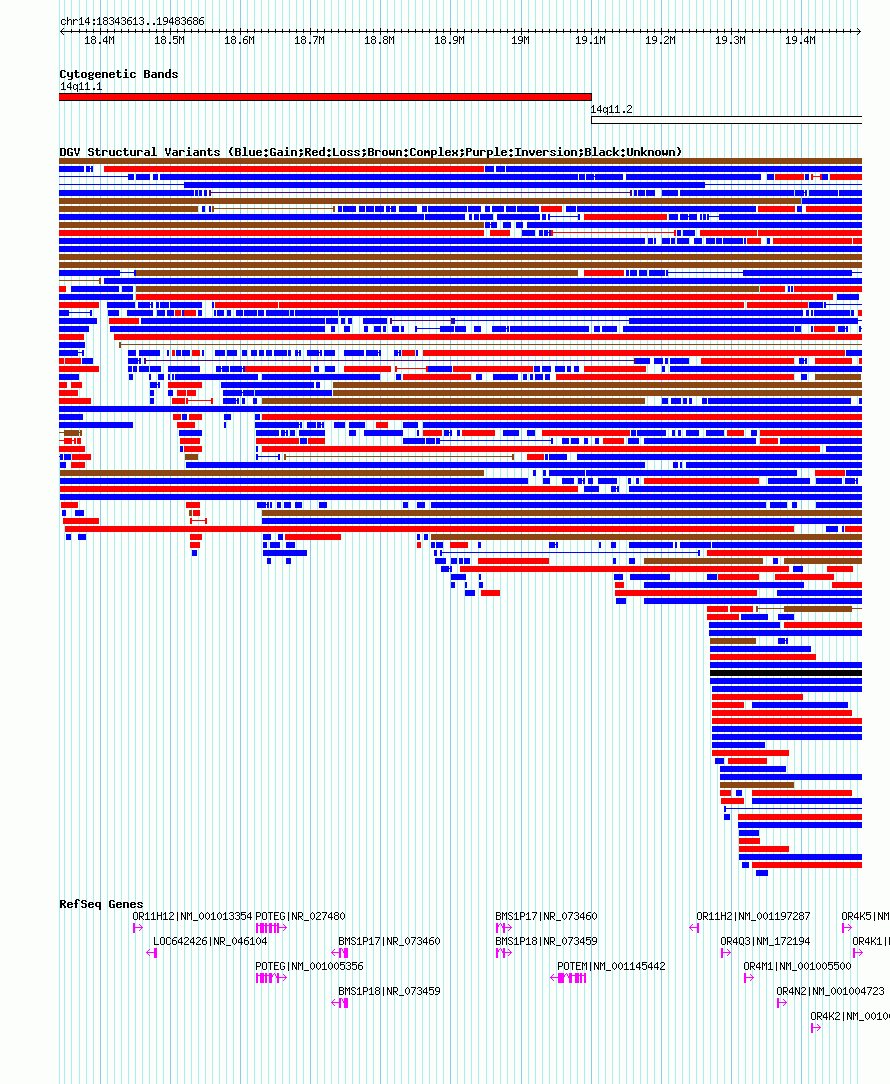 Variant DetailsVariant: nsv1053640| Internal ID | 19142859 | | Landmark | | | Location Information | | | Cytoband | 14q11.1 | | Allele length | | Assembly | Allele length | | hg38 | 1448552 | | hg19 | 1140234 | | hg18 | 1140074 |