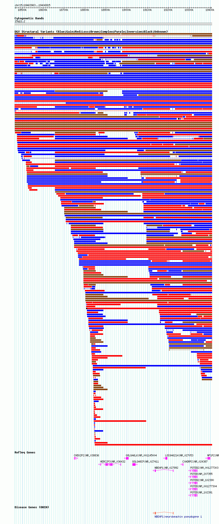 Variant DetailsVariant: nsv1053642| Internal ID | 19142861 | | Landmark | | | Location Information | | | Cytoband | 15q11.1 | | Allele length | | Assembly | Allele length | | hg38 | 938232 | | hg19 | 938308 | | hg18 | 942953 |