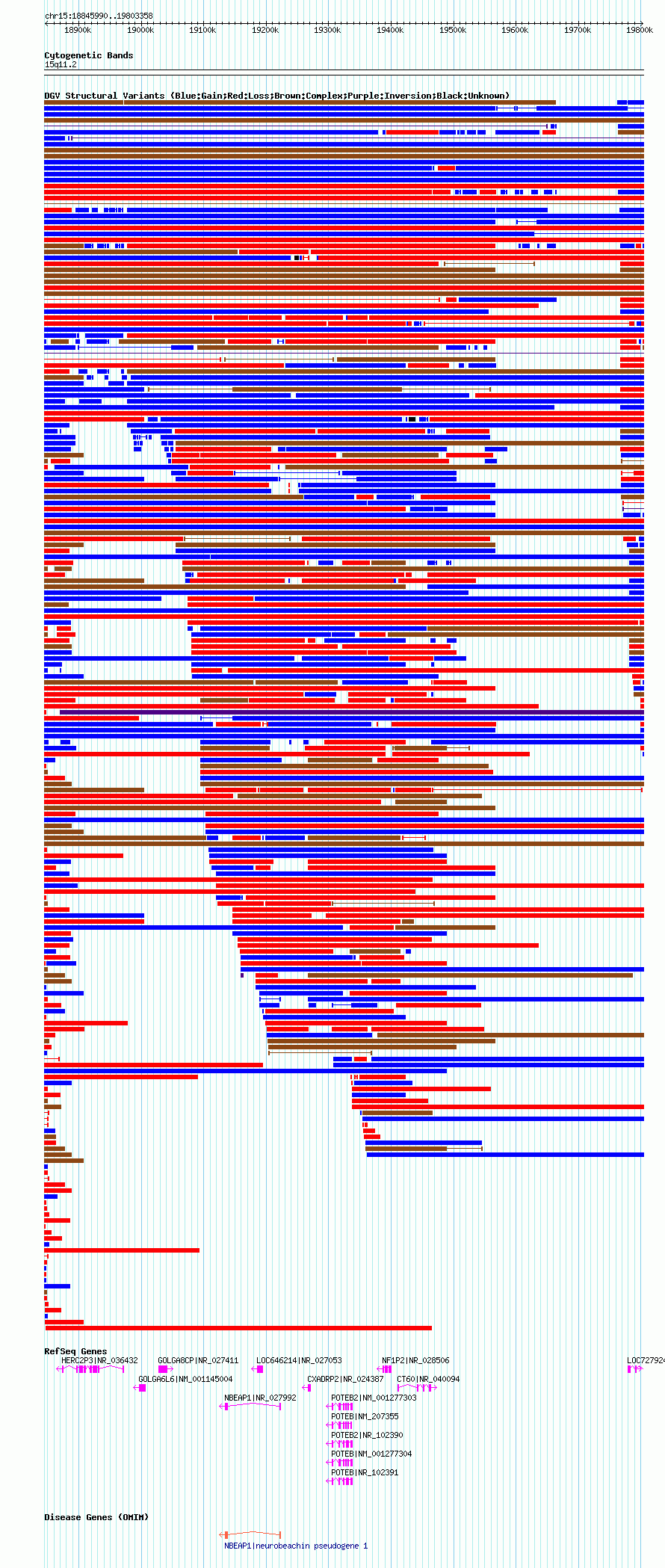 Variant DetailsVariant: nsv1053704| Internal ID | 19142923 | | Landmark | | | Location Information | | | Cytoband | 15q11.1 | | Allele length | | Assembly | Allele length | | hg38 | 1633321 | | hg19 | 1716019 | | hg18 | 957369 |