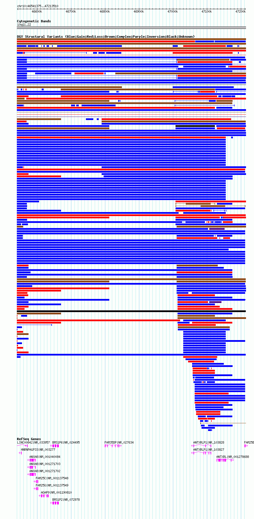 Variant DetailsVariant: nsv1053988| Internal ID | 19143207 | | Landmark | | | Location Information | | | Cytoband | 10q11.22 | | Allele length | | Assembly | Allele length | | hg19 | 622136 | | hg18 | 672136 |