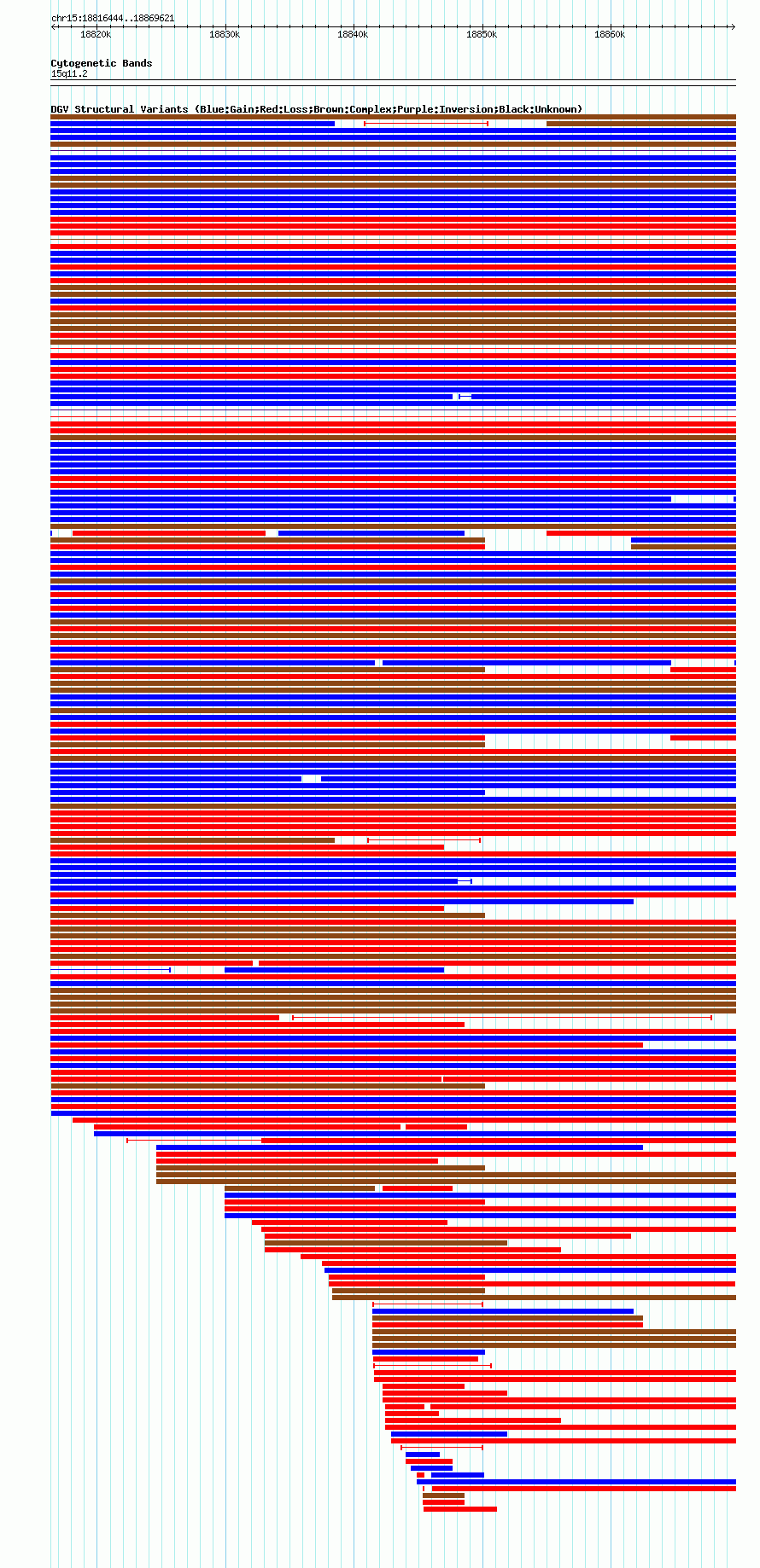 Variant DetailsVariant: nsv1054007| Internal ID | 19143226 | | Landmark | | | Location Information | | | Cytoband | 15q11.1 | | Allele length | | Assembly | Allele length | | hg38 | 53178 | | hg19 | 53178 | | hg18 | 53178 |