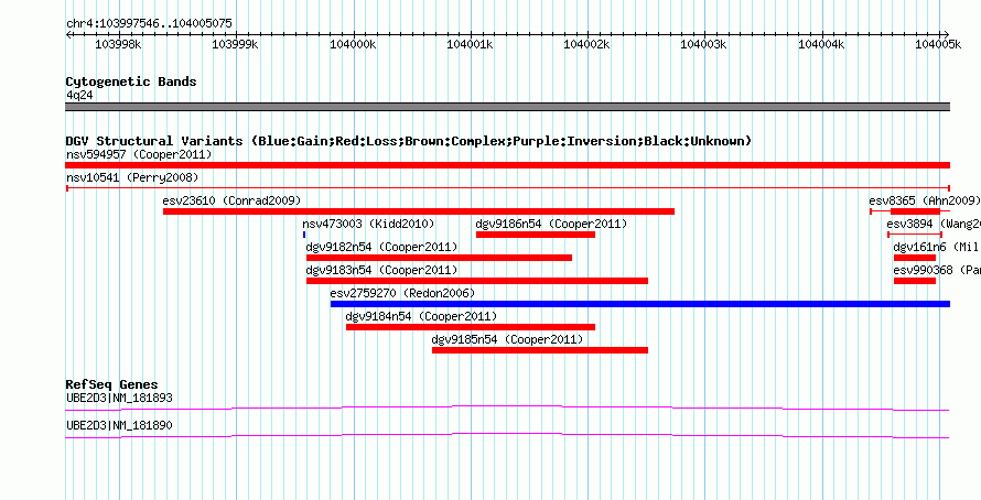 Variant DetailsVariant: nsv10541| Internal ID | 15845504 | | Landmark | | | Location Information | | | Cytoband | 4q24 | | Allele length | | Assembly | Allele length | | hg38 | 7194 | | hg19 | 7194 | | hg18 | 7530 | | hg17 | 7530 |