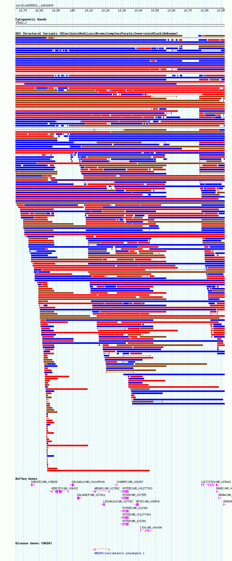 Variant DetailsVariant: nsv1054119| Internal ID | 19143338 | | Landmark | | | Location Information | | | Cytoband | 15q11.1 | | Allele length | | Assembly | Allele length | | hg38 | 1939327 | | hg19 | 2022025 | | hg18 | 1263375 |