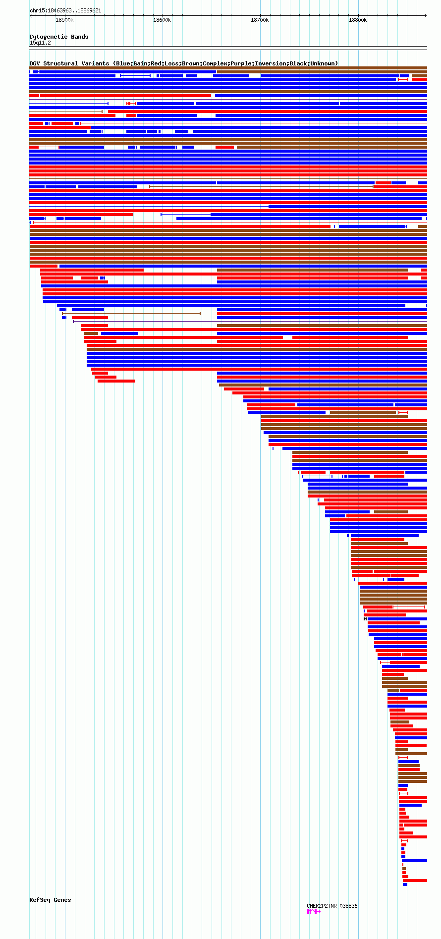Variant DetailsVariant: nsv1054140| Internal ID | 19143359 | | Landmark | | | Location Information | | | Cytoband | 15q11.1 | | Allele length | | Assembly | Allele length | | hg38 | 405659 | | hg19 | 405659 | | hg18 | 405659 |