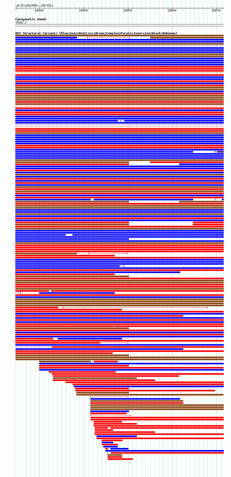Variant DetailsVariant: nsv1054141| Internal ID | 19143360 | | Landmark | | | Location Information | | | Cytoband | 15q11.1 | | Allele length | | Assembly | Allele length | | hg38 | 46923 | | hg19 | 46923 | | hg18 | 46923 |