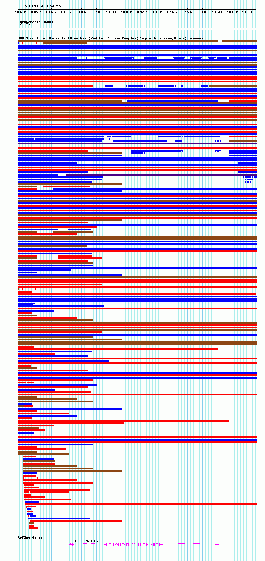 | | Variant Type | CNV loss | | Copy Number | | | Allele State | | | Allele Origin | | | Probe Count | | | Validation Flag | | | Merged Status | M | | Merged Variants | dgv2256n100 | | Supporting Variants | nssv3535831, nssv3535832 | | Samples | | | Known Genes | HERC2P3 | | Method | SNP array | | Analysis | Affymetrix SNP array copy number analysis | | Platform | Affymetrix SNP Array 6.0 | | Comments | | | Reference | Coe_et_al_2014 | | Pubmed ID | 25217958 | | Accession Number(s) | nsv1054379