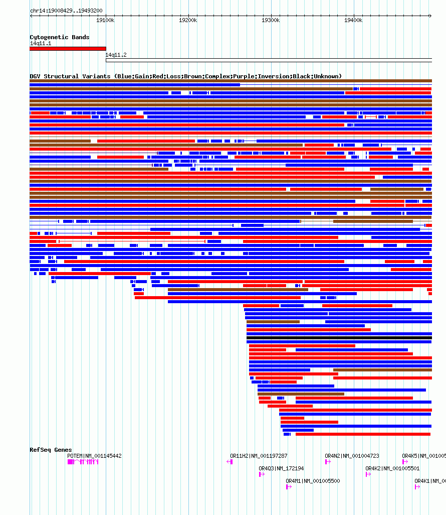 Variant DetailsVariant: nsv1054526| Internal ID | 19143745 | | Landmark | | | Location Information | | | Cytoband | 14q11.1 | | Allele length | | Assembly | Allele length | | hg38 | 604456 | | hg19 | 484932 | | hg18 | 484772 |