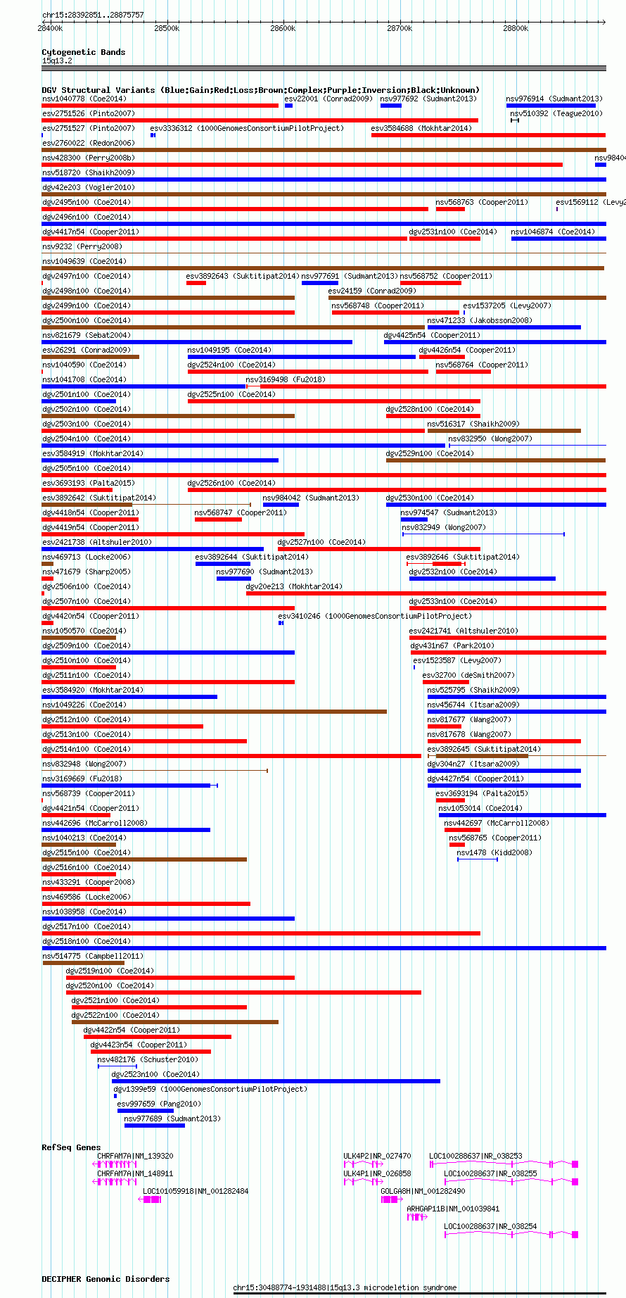 Variant DetailsVariant: nsv1054601| Internal ID | 19143820 | | Landmark | | | Location Information | | | Cytoband | 15q13.2 | | Allele length | | Assembly | Allele length | | hg38 | 482907 | | hg19 | 482907 | | hg18 | 482907 |