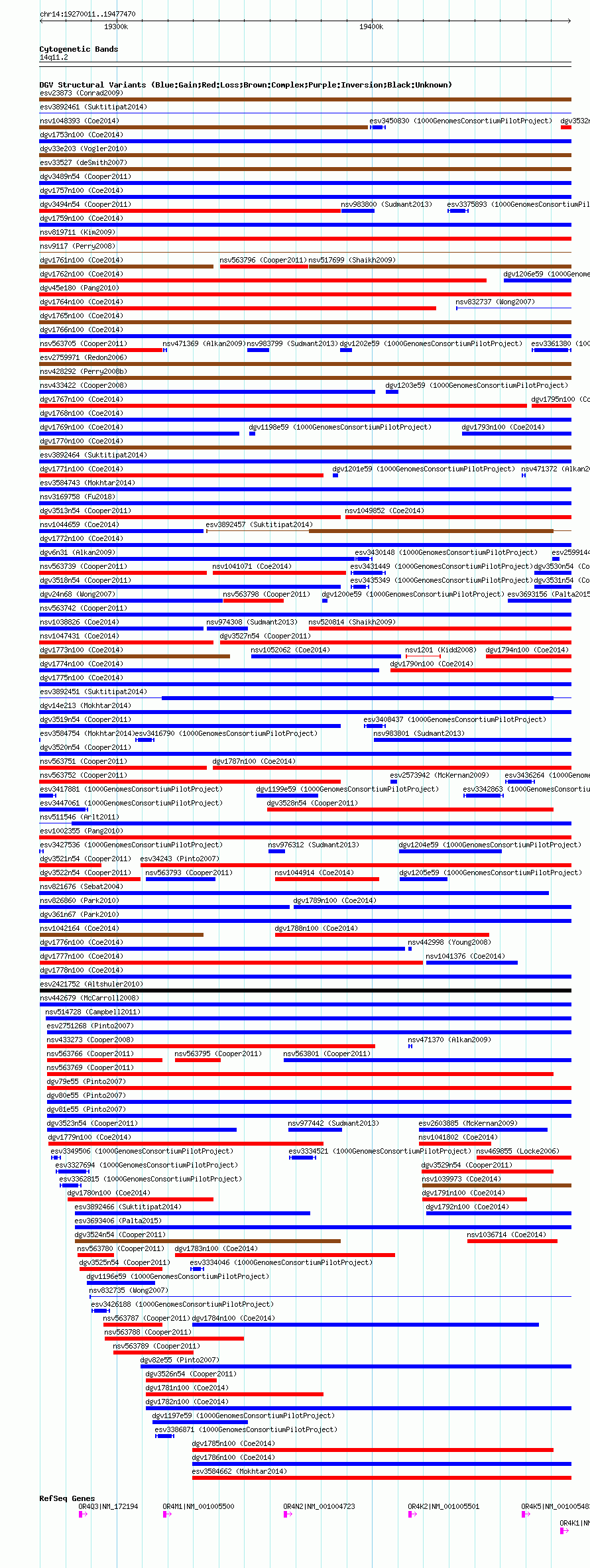 Variant DetailsVariant: nsv1054715| Internal ID | 19143934 | | Landmark | | | Location Information | | | Cytoband | 14q11.2 | | Allele length | | Assembly | Allele length | | hg38 | 207460 | | hg19 | 207460 | | hg18 | 207460 |