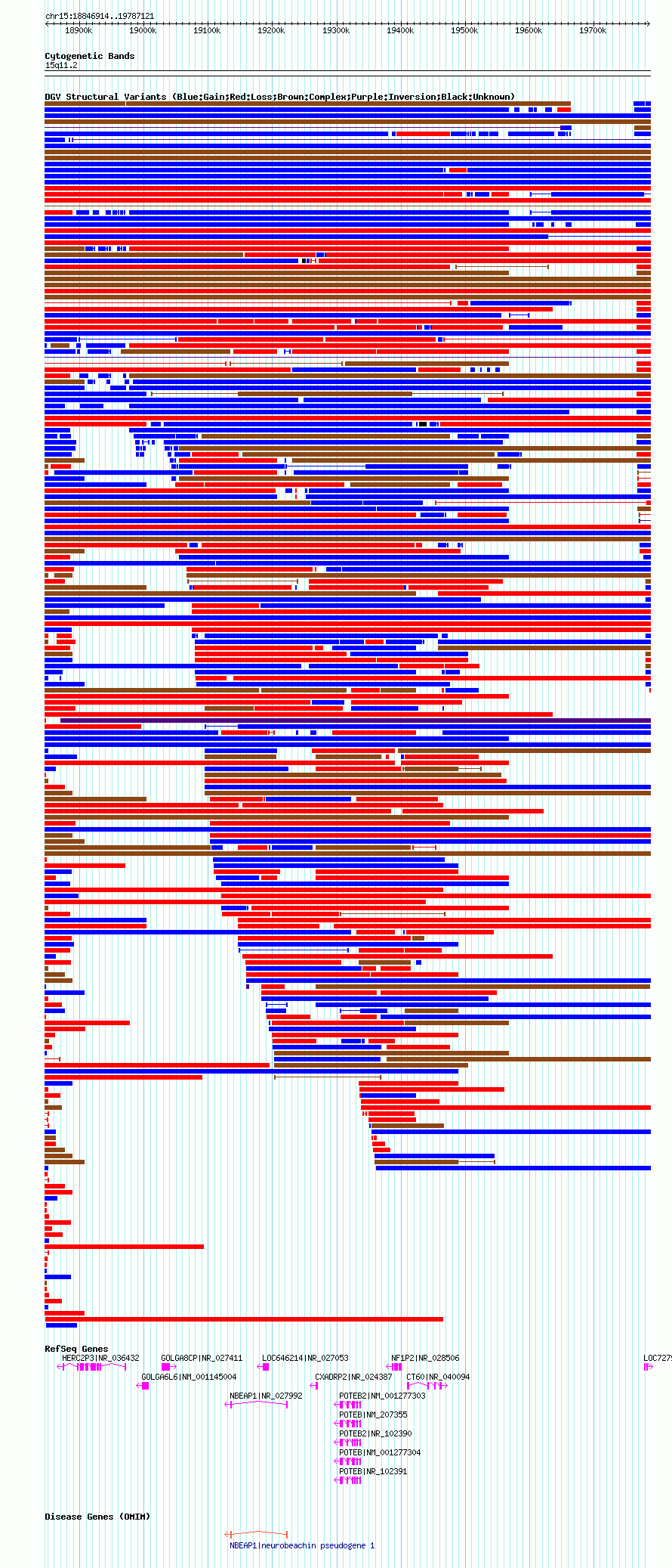 Variant DetailsVariant: nsv1055075| Internal ID | 19144294 | | Landmark | | | Location Information | | | Cytoband | 15q11.1 | | Allele length | | Assembly | Allele length | | hg38 | 1616160 | | hg19 | 1698858 | | hg18 | 940208 |