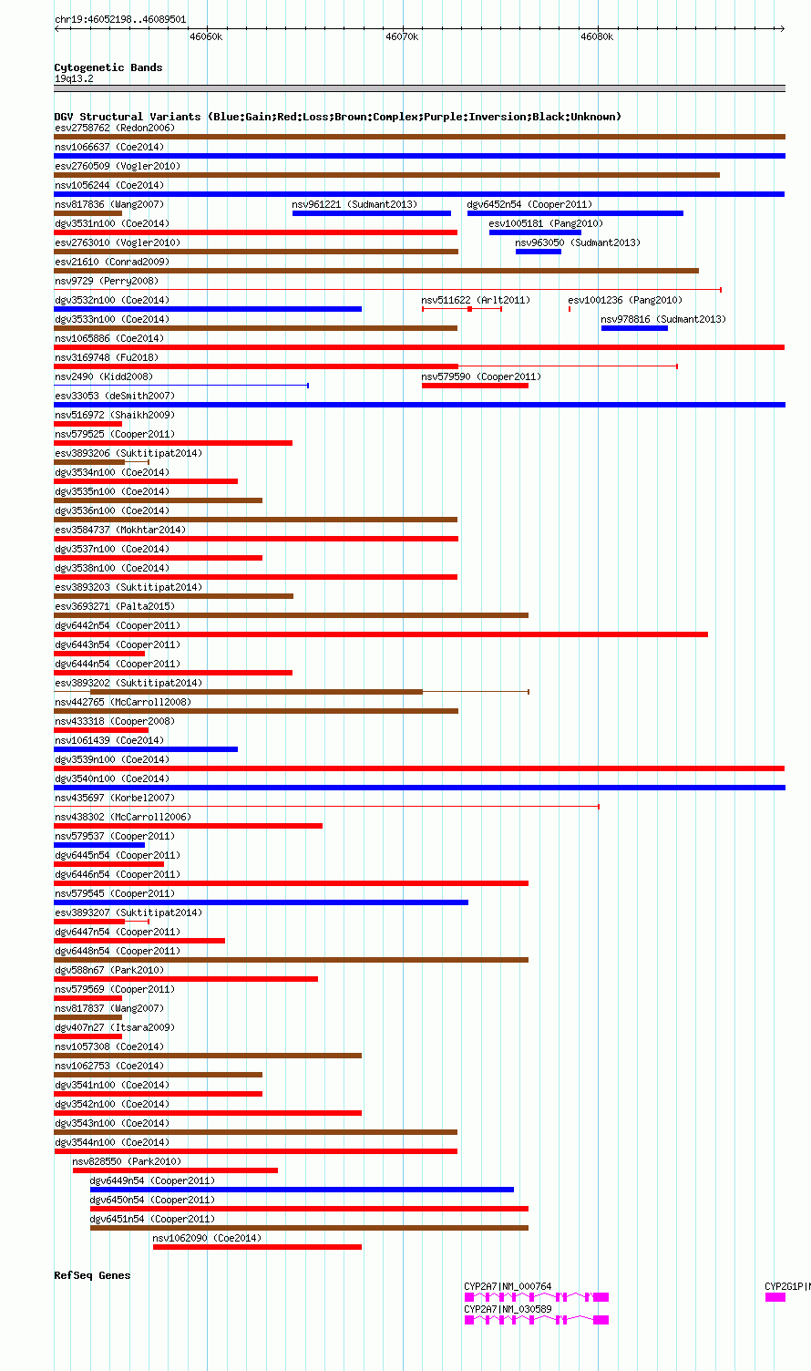 Variant DetailsVariant: nsv1055263| Internal ID | 19144482 | | Landmark | | | Location Information | | | Cytoband | 19q13.2 | | Allele length | | Assembly | Allele length | | hg38 | 37304 | | hg19 | 37304 | | hg18 | 37304 |