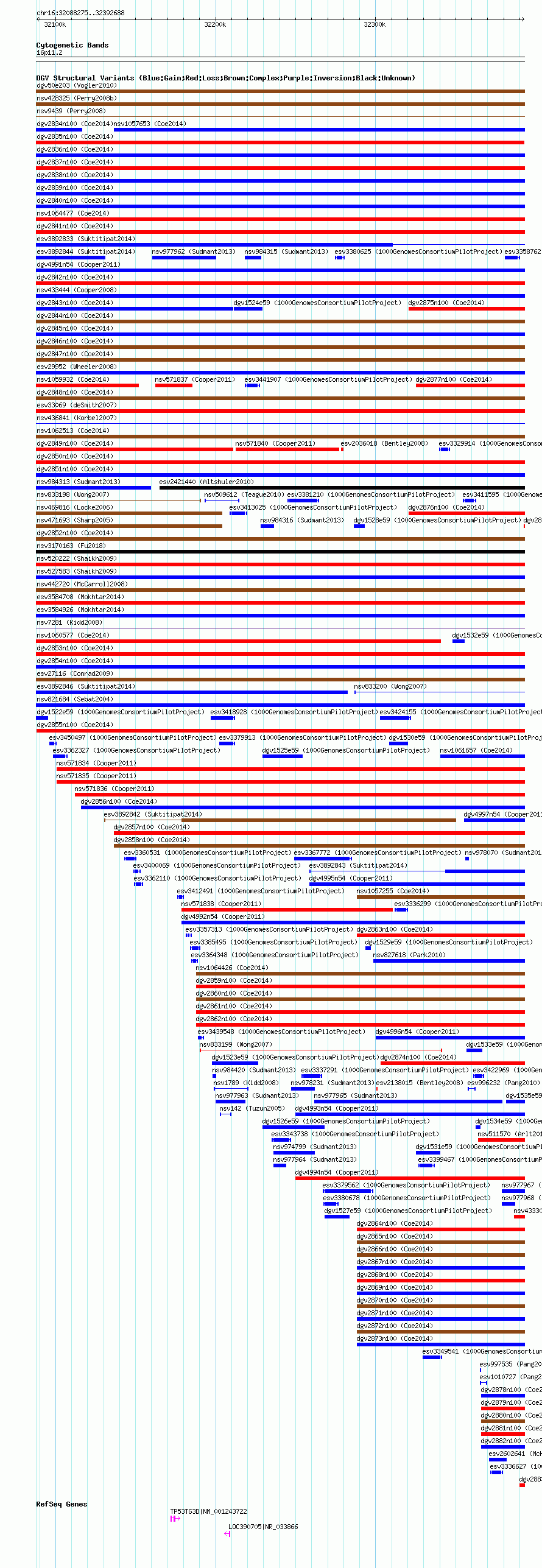 Variant DetailsVariant: nsv1055543| Internal ID | 19144762 | | Landmark | | | Location Information | | | Cytoband | 16p11.2 | | Allele length | | Assembly | Allele length | | hg38 | 304414 | | hg19 | 304414 | | hg18 | 304414 |