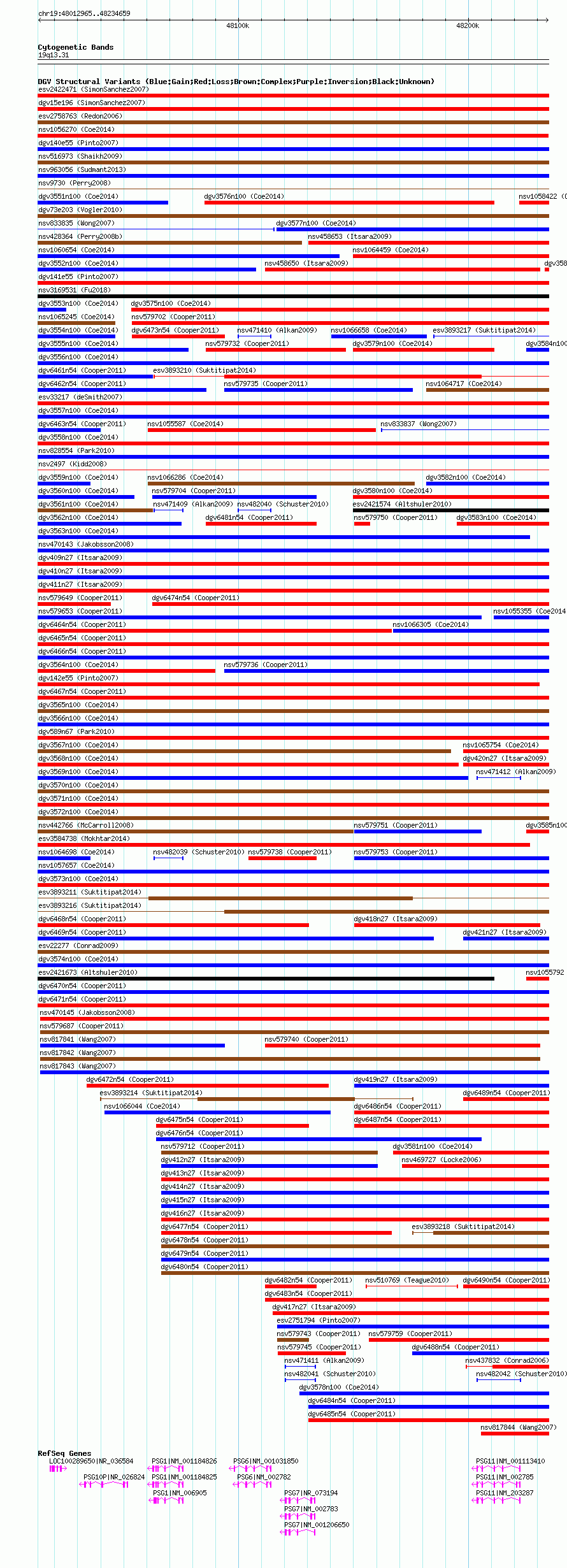 Variant DetailsVariant: nsv1055576| Internal ID | 19144795 | | Landmark | | | Location Information | | | Cytoband | 19q13.2 | | Allele length | | Assembly | Allele length | | hg38 | 221695 | | hg19 | 221695 | | hg18 | 221695 |