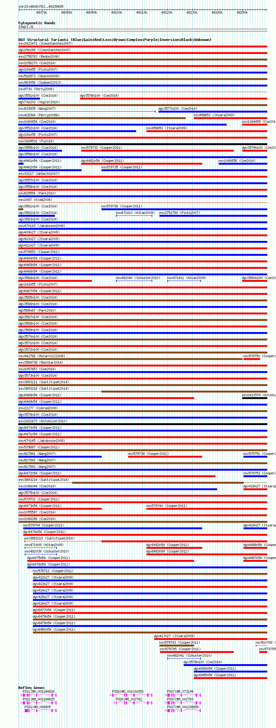 Variant DetailsVariant: nsv1055587| Internal ID | 19144806 | | Landmark | | | Location Information | | | Cytoband | 19q13.2 | | Allele length | | Assembly | Allele length | | hg38 | 98933 | | hg19 | 98933 | | hg18 | 98933 |