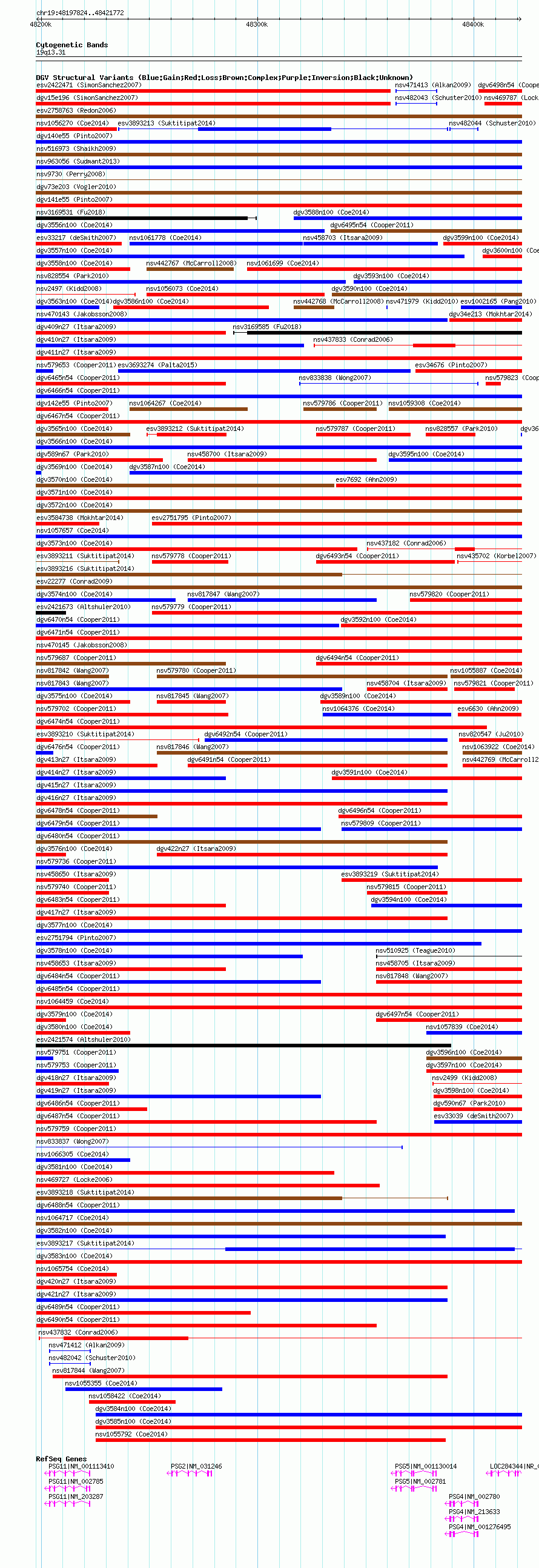 Variant DetailsVariant: nsv1055880| Internal ID | 19145099 | | Landmark | | | Location Information | | | Cytoband | 19q13.31 | | Allele length | | Assembly | Allele length | | hg38 | 223949 | | hg19 | 223949 | | hg18 | 223949 |