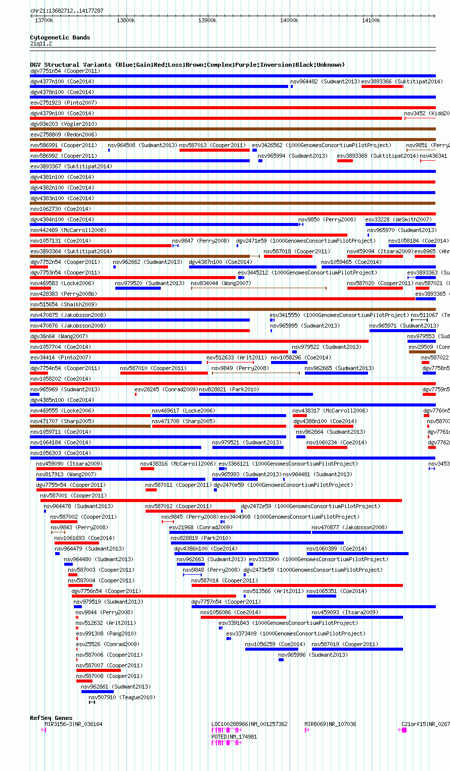 Variant DetailsVariant: nsv1056303| Internal ID | 19145522 | | Landmark | | | Location Information | | | Cytoband | 21q11.2 | | Allele length | | Assembly | Allele length | | hg38 | 494576 | | hg19 | 494576 | | hg18 | 494576 |
