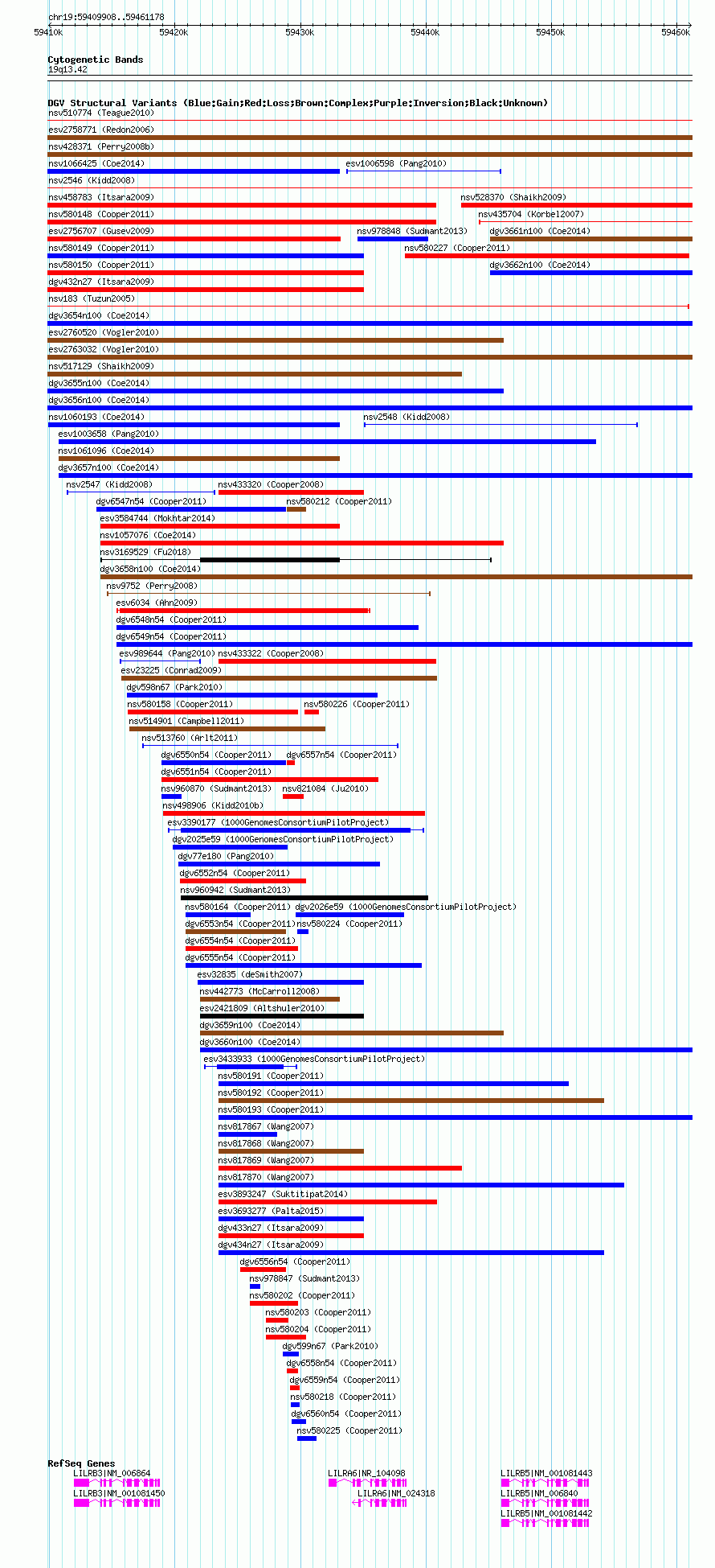 Variant DetailsVariant: nsv1056552| Internal ID | 19145771 | | Landmark | | | Location Information | | | Cytoband | 19q13.42 | | Allele length | | Assembly | Allele length | | hg38 | 51286 | | hg19 | 51271 | | hg18 | 51271 |