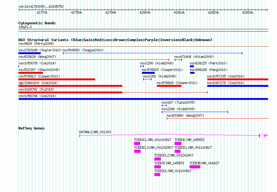 Variant DetailsVariant: nsv1056744| Internal ID | 19145963 | | Landmark | | | Location Information | | | Cytoband | 18q21.1 | | Allele length | | Assembly | Allele length | | hg38 | 126293 | | hg19 | 72701 | | hg18 | 72701 |