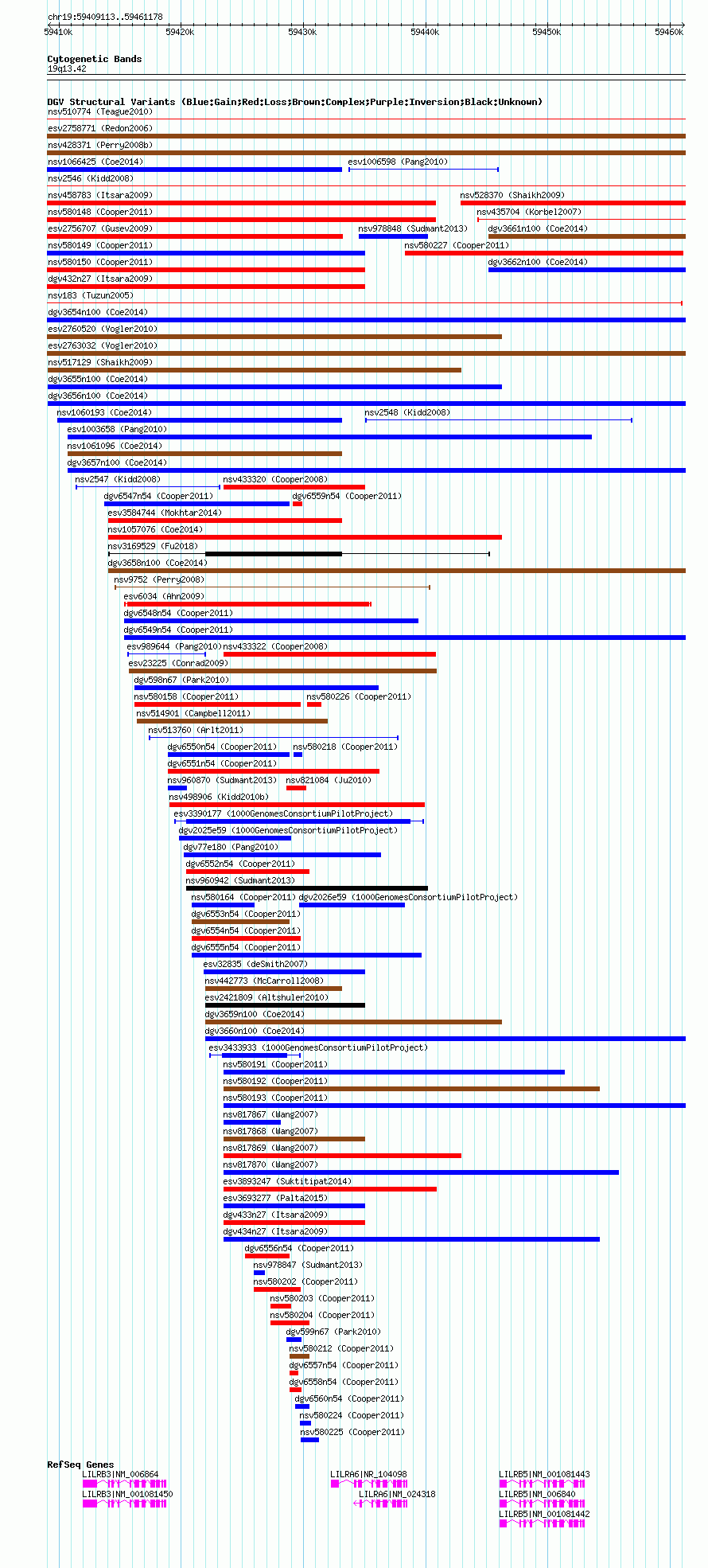 Variant DetailsVariant: nsv1056750| Internal ID | 19145969 | | Landmark | | | Location Information | | | Cytoband | 19q13.42 | | Allele length | | Assembly | Allele length | | hg38 | 52081 | | hg19 | 52066 | | hg18 | 52066 |