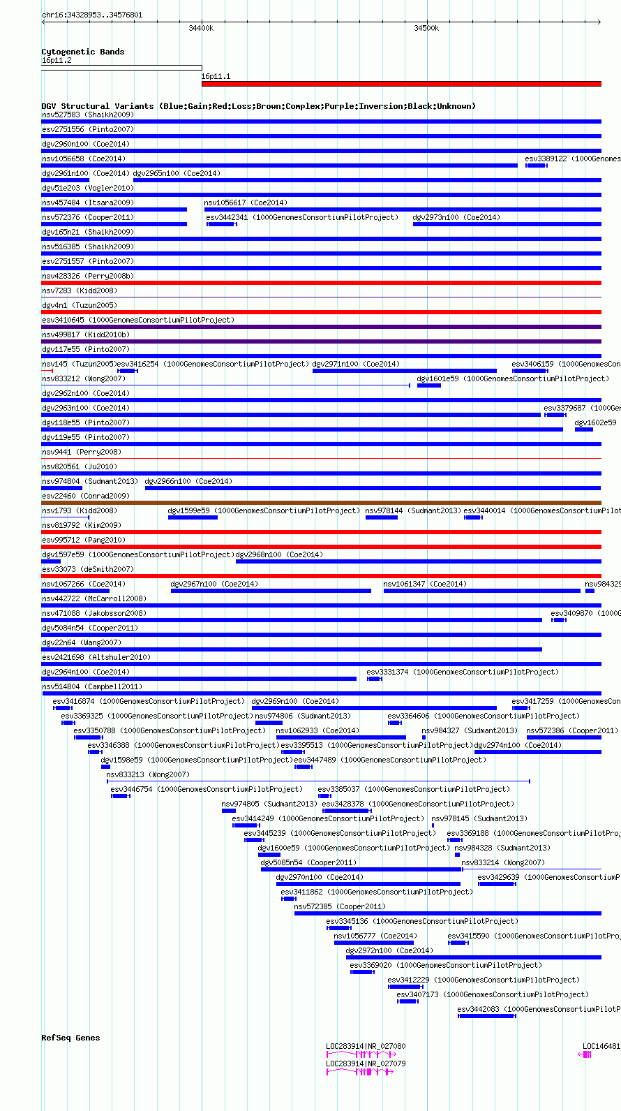 Variant DetailsVariant: nsv1056820| Internal ID | 19146039 | | Landmark | | | Location Information | | | Cytoband | 16p11.1 | | Allele length | | Assembly | Allele length | | hg38 | 247849 | | hg19 | 247849 | | hg18 | 247849 |