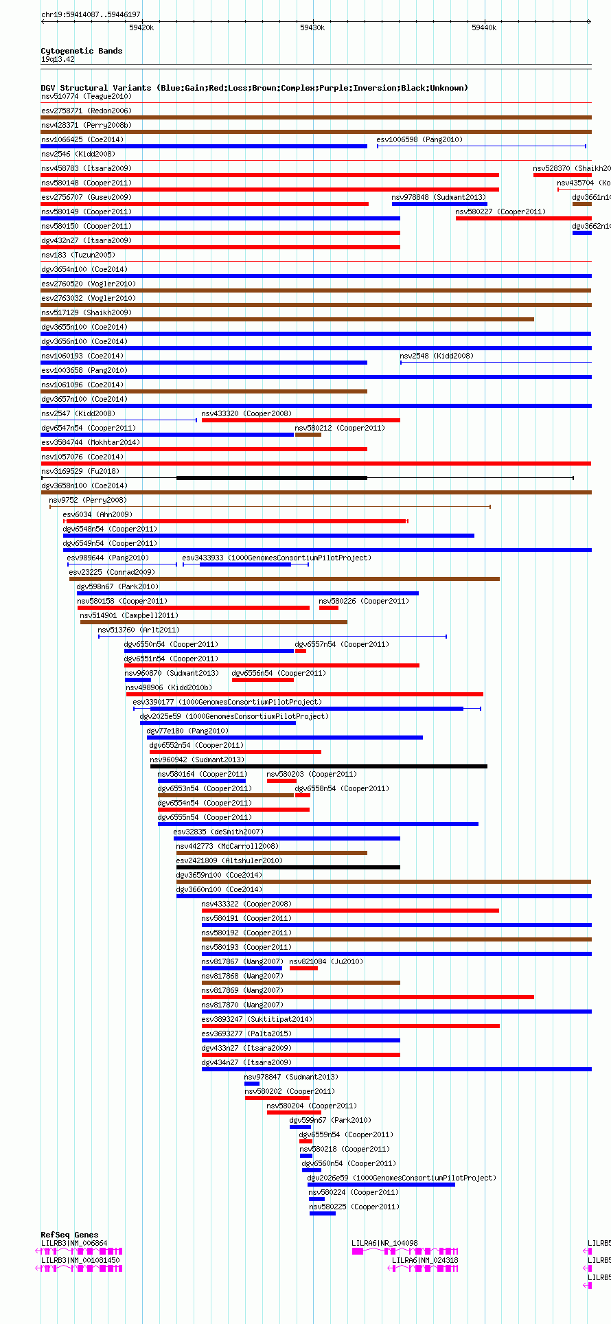 Variant DetailsVariant: nsv1057076| Internal ID | 19146295 | | Landmark | | | Location Information | | | Cytoband | 19q13.42 | | Allele length | | Assembly | Allele length | | hg38 | 32116 | | hg19 | 32111 | | hg18 | 32111 |